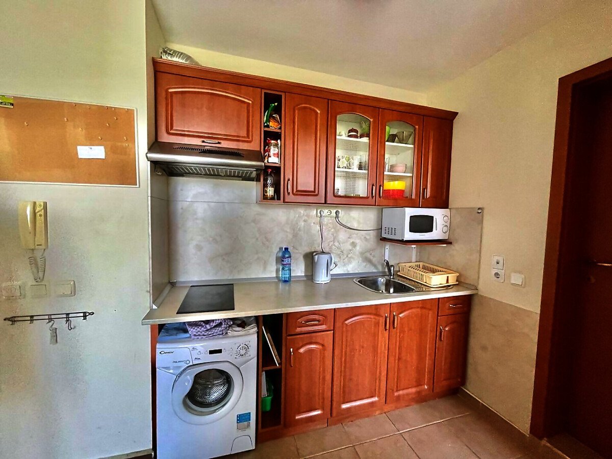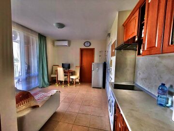 Апартаментът се намира на втори етаж и е с площ от 57кв.м., състои се от стилна вчекидневна с кухненски блок, две светли спални, баня и тераса с гледка към двора.