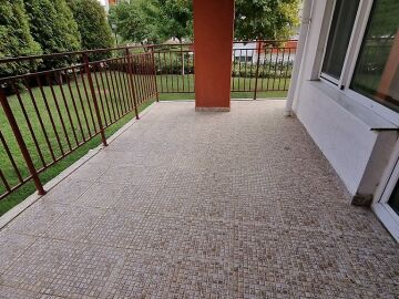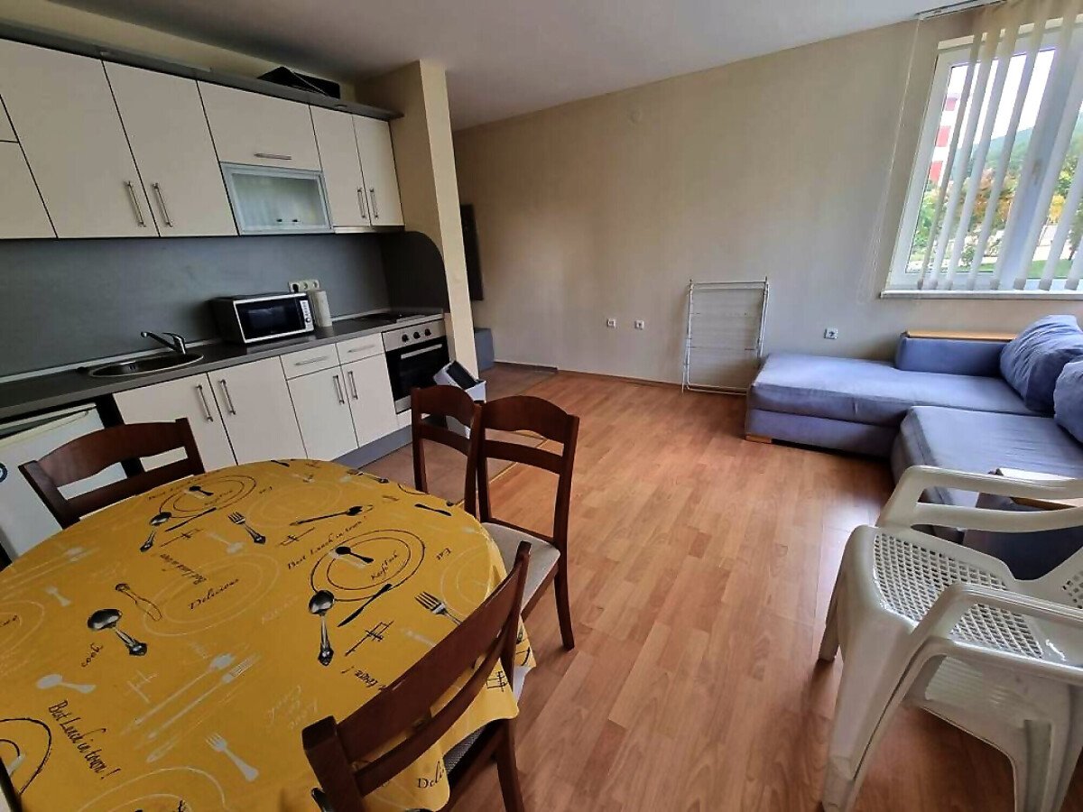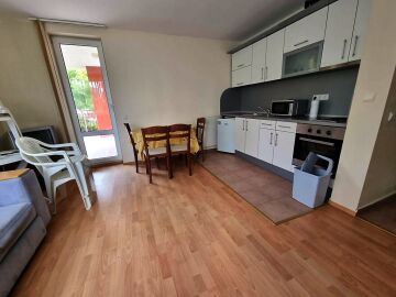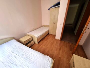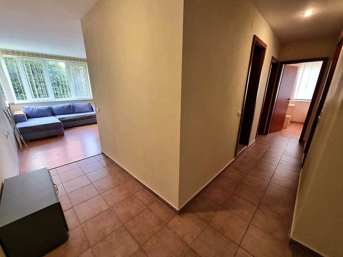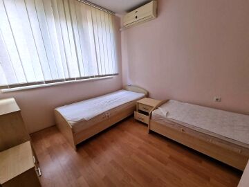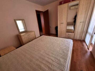 Апартаментът се намира на партерен етаж и е с площ от 87кв.м., състои се от входно антре, всекидневна, две спални, две бани и тераса с чудесна гледка към море.