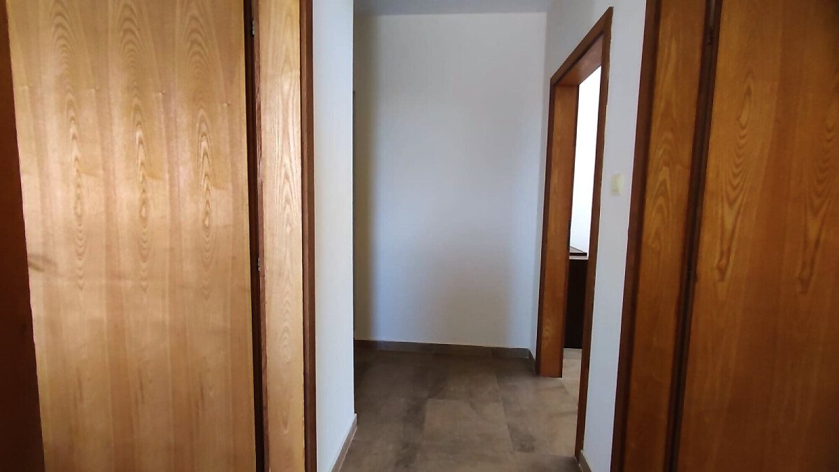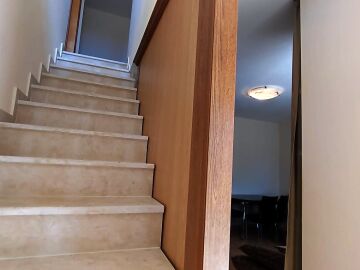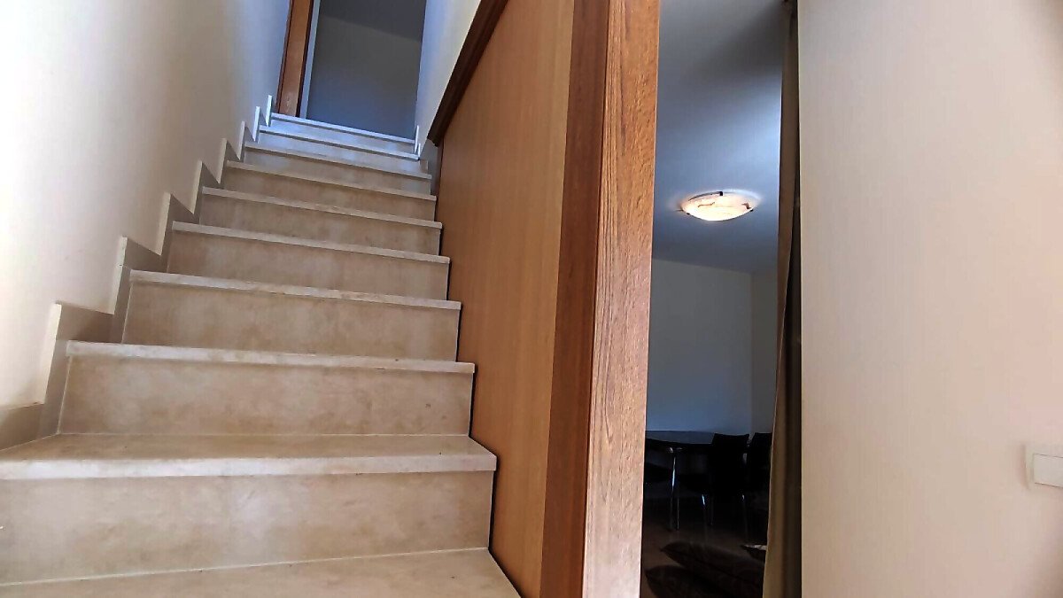състои от всекидневна с кухненски блок и тераса, втория етаж е с три спални, две бани и три тераси с гледка към паркинга и море.