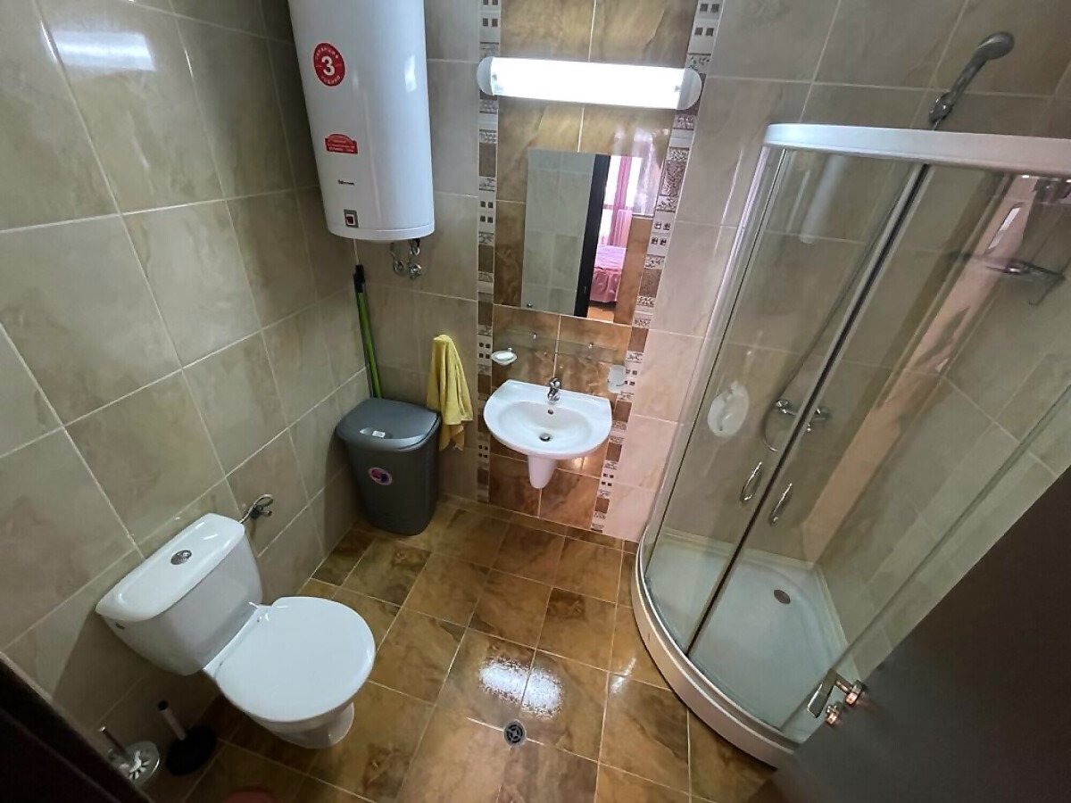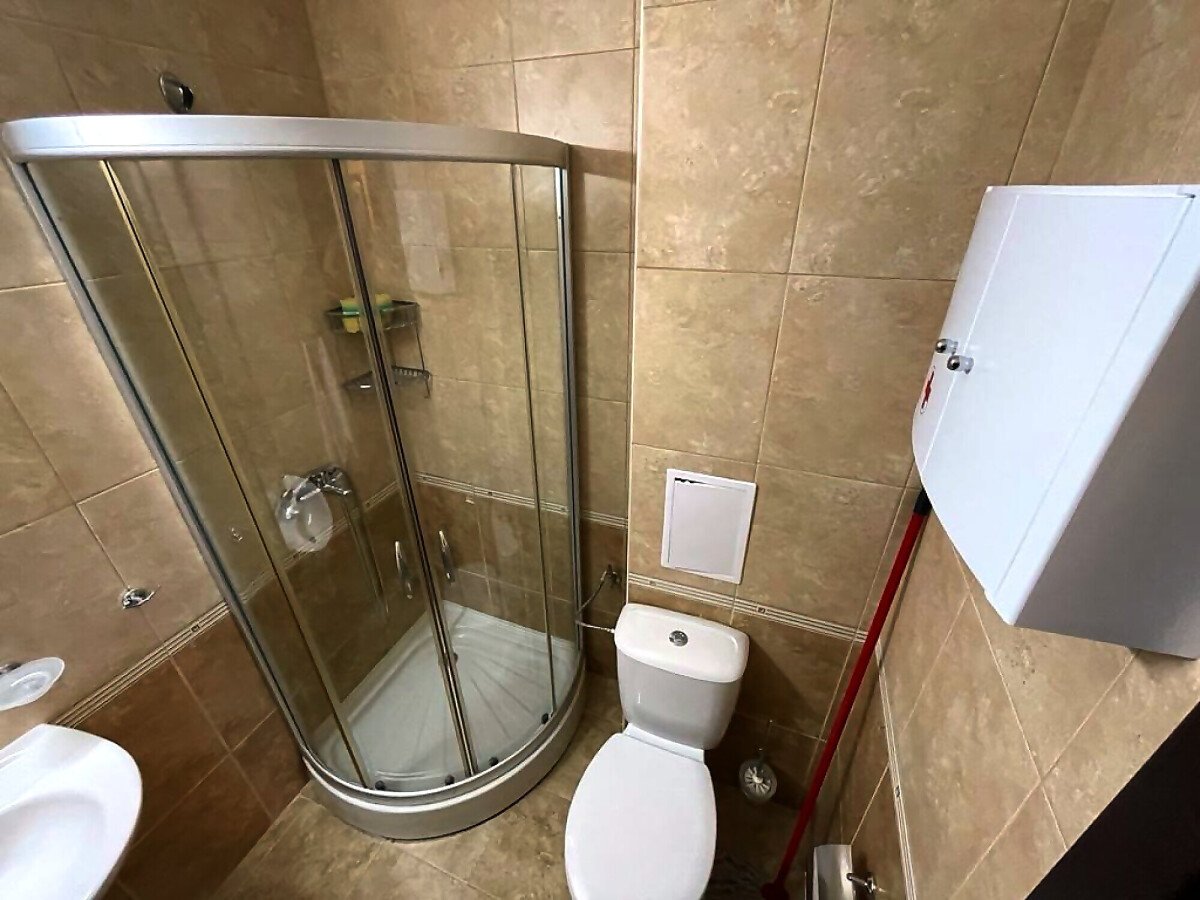 Апартаментът се намира на 4 етаж и е с площ от 80кв.м., състои се от входно антре, всекидневна с кухненски блок, две спални, две бани и две тераси с гледка към басейн.