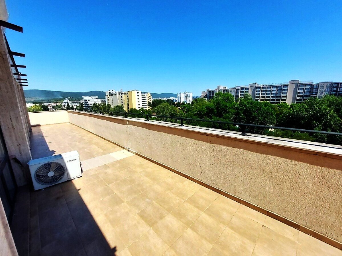 Апартаментът се намира на 4 етаж и е с площ от 91кв.м., състои се от стилна всекидневна, спалня, баня и тераса с гледка към планина.