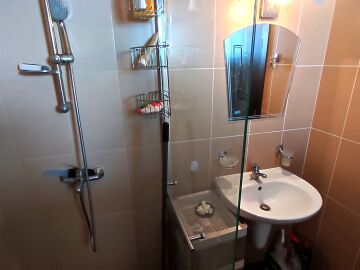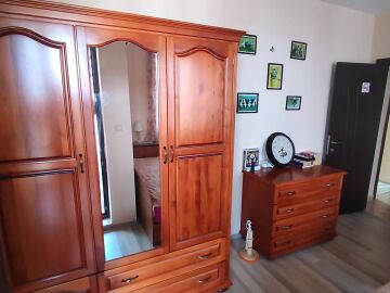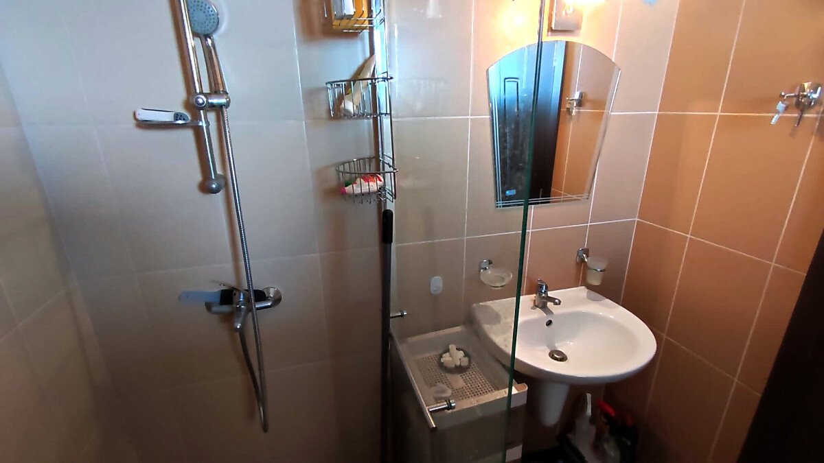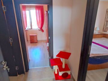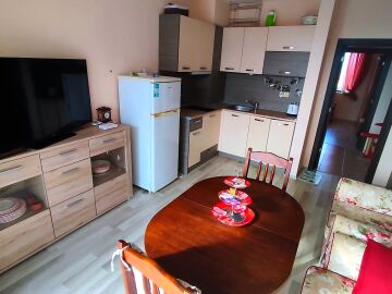 Апартаментът се намира на шести етаж и е с площ от 95кв.м., състои се от входно антре, всекидневна с кухненски блок, две спални, баня и две тераси с панорамна гледка към море.