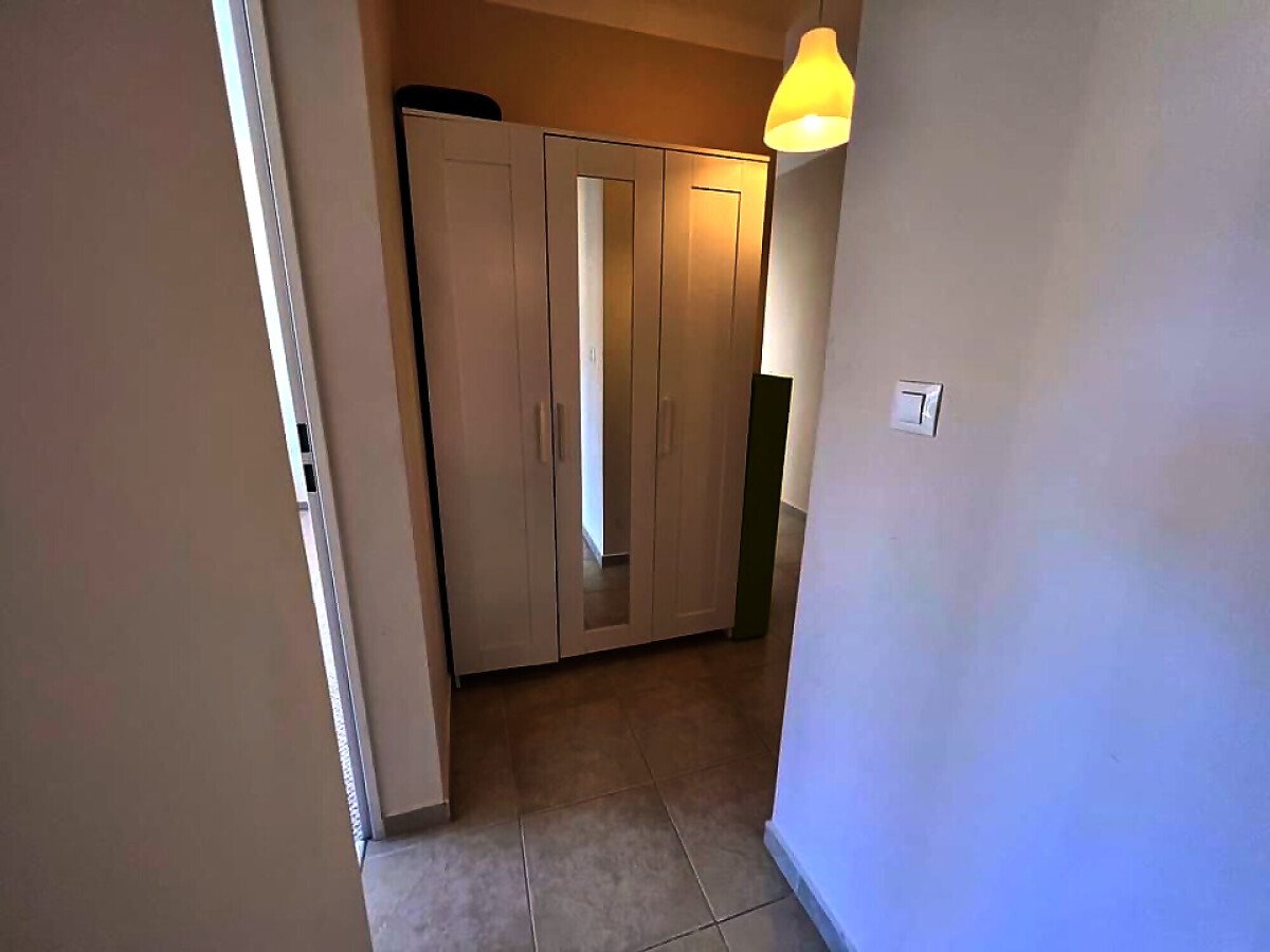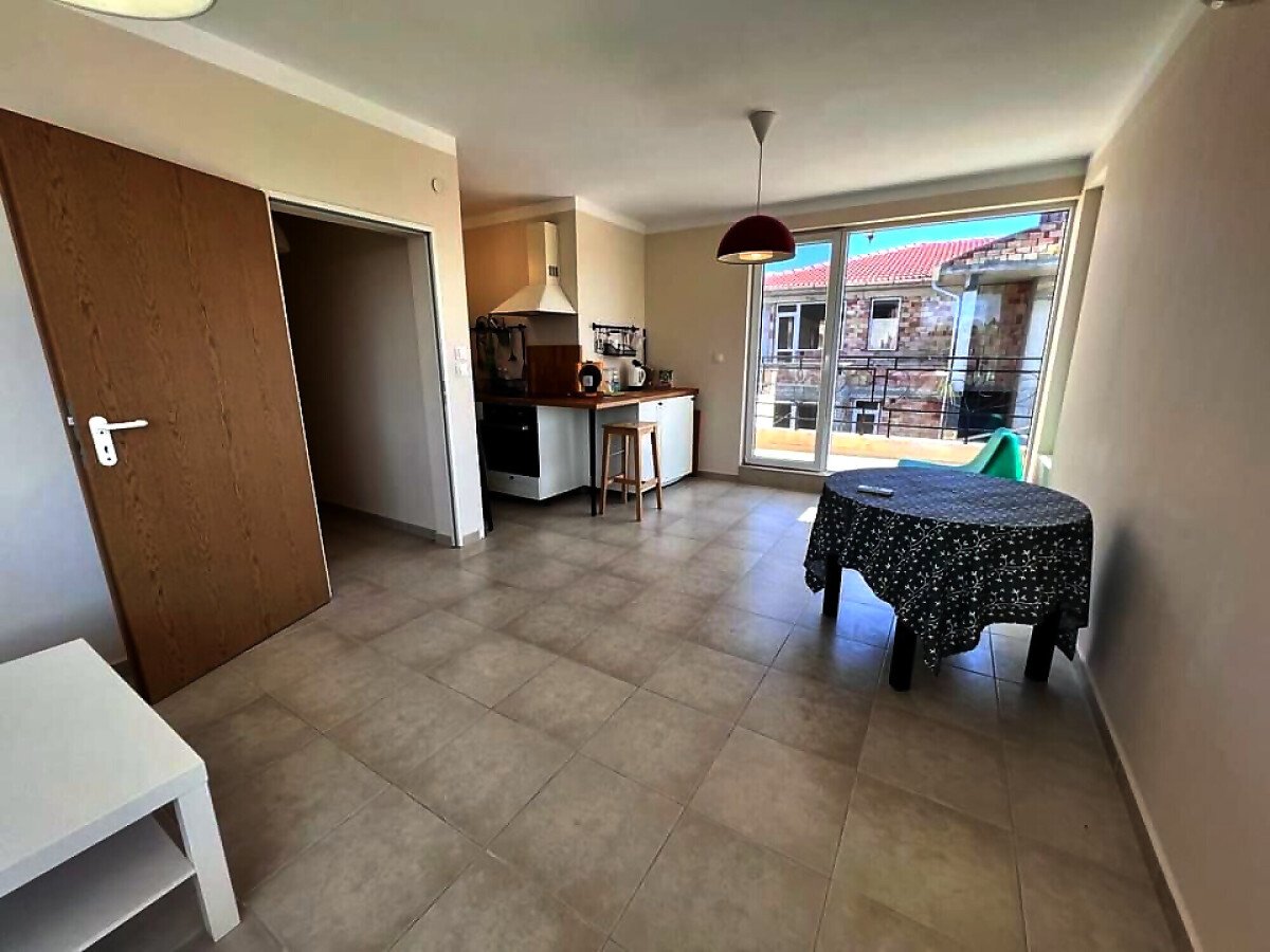 Апартаментът се намира на пети етаж и е с площ от 100кв.м., състои се от входно антре, всекидневна с кухненски блок, две спални, баня и три тераси с гледка към басейн.