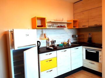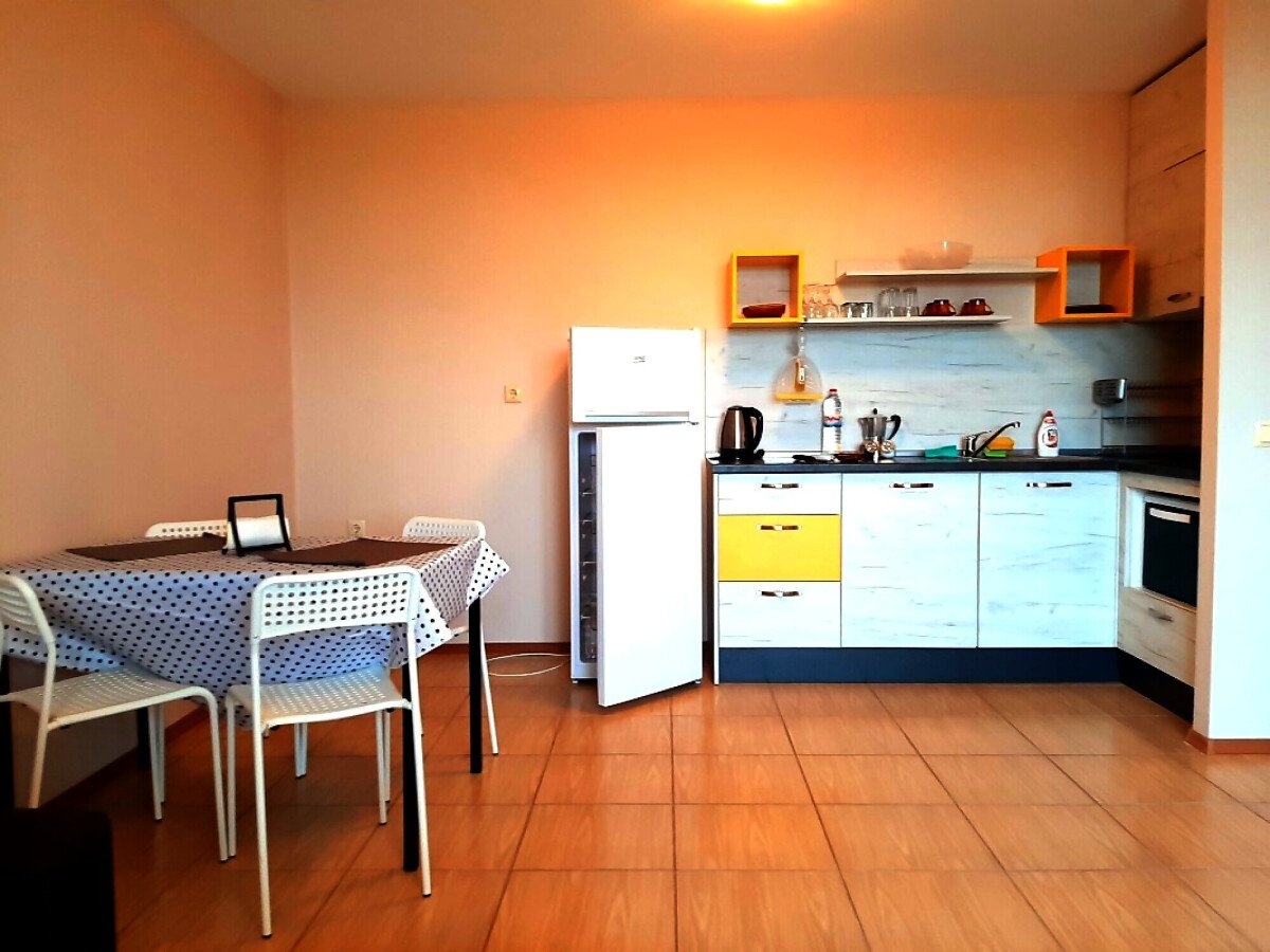 Апартаментът се намира на втори етаж и е с площ от 67,12кв.м,състои се от входно антре, просторна дневна с кухня, една спалня, баня-тоалетна и тераса с гледка към двора.