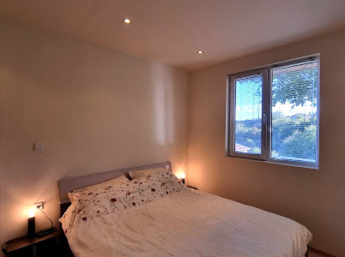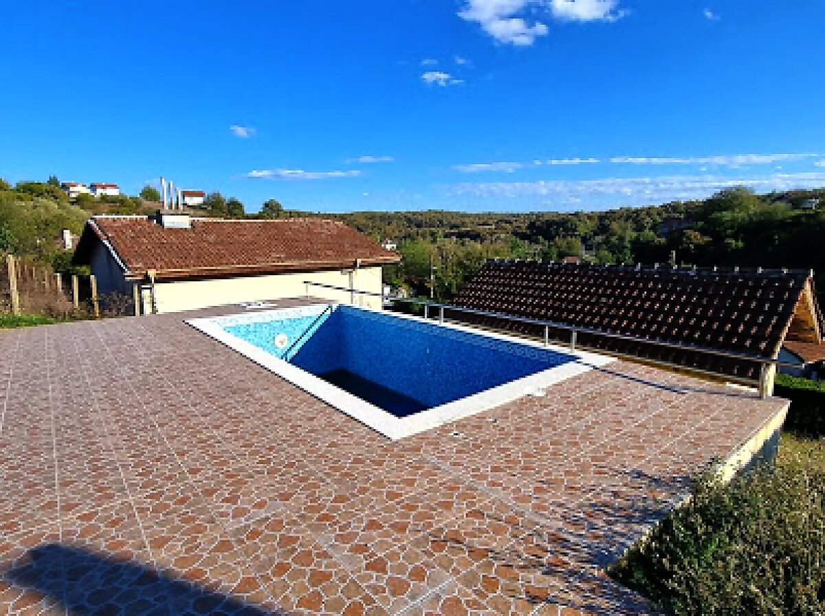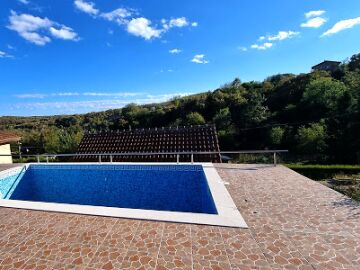 Къщата е с площ от 100кв.м., разполага с басейн, навес за почивка, всекидневна с кухненски блок, три спални, баня и тераса с гледка към гора.