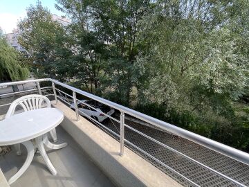 Апартаментът се намира на втори етаж и е с площ от 60кв.м., състои се от всекидневна с кухненски блок, спалня, баня и тераса с гледка към паркинг.