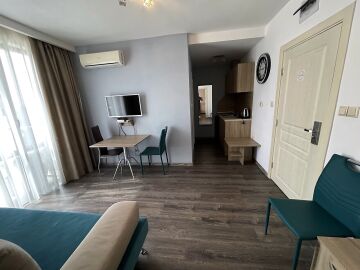 BG Properties Invest ви предлага прекрасен двустаен апартамент в комплекс Tarsis Club & Aquapark, който се намира само на 10 минути пеша от плажа.