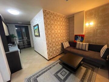 Апартаментът се намира на втори етаж и е с площ от 67кв.м., състои се от голямо входно антре, всекидневна с кухненски блок, спалня, баня.