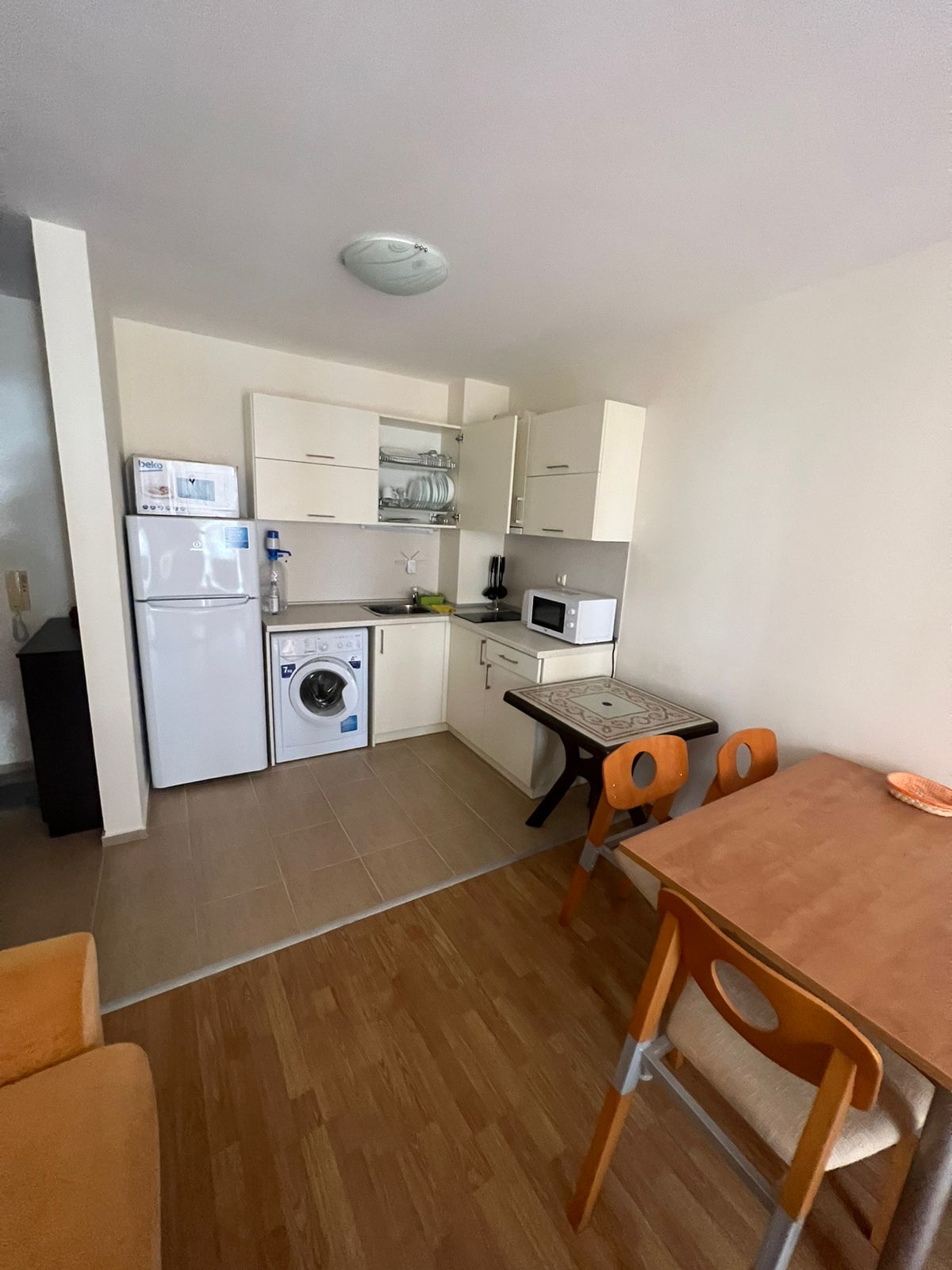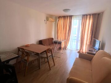 Апартаментът е в чудесно състояние, напълно обзаведен и оборудван с всички необходими домакински електроуреди. Състои се от всекидневна с кухненски бокс и кът за хранене, спалня, баня с тоалетна и душ кабина и тераса. Жилището е подходящо както за целогодишно ползване, така и за летен отдих.