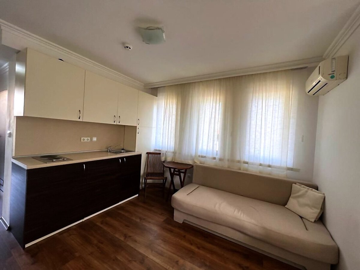 Апартаментът има следното разпределение - всекидневна с кухненски бокс, баня с тоалетна и тераса. Имотът е обзаведен и оборудван, в много добро състояние.