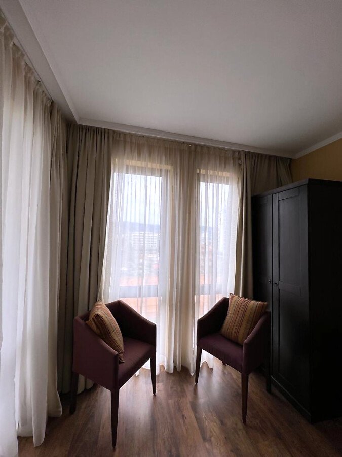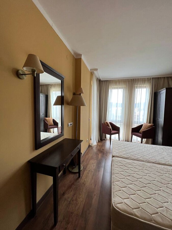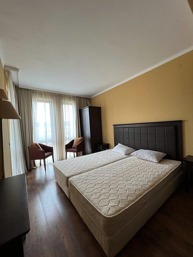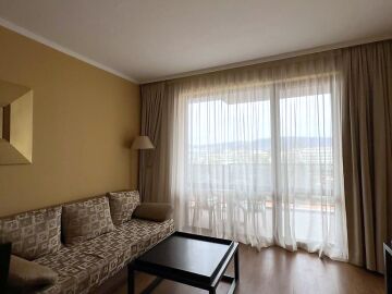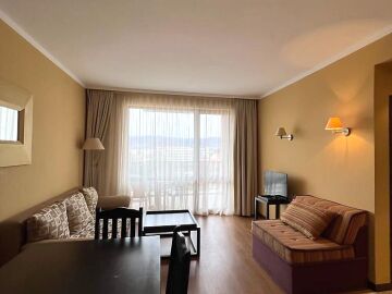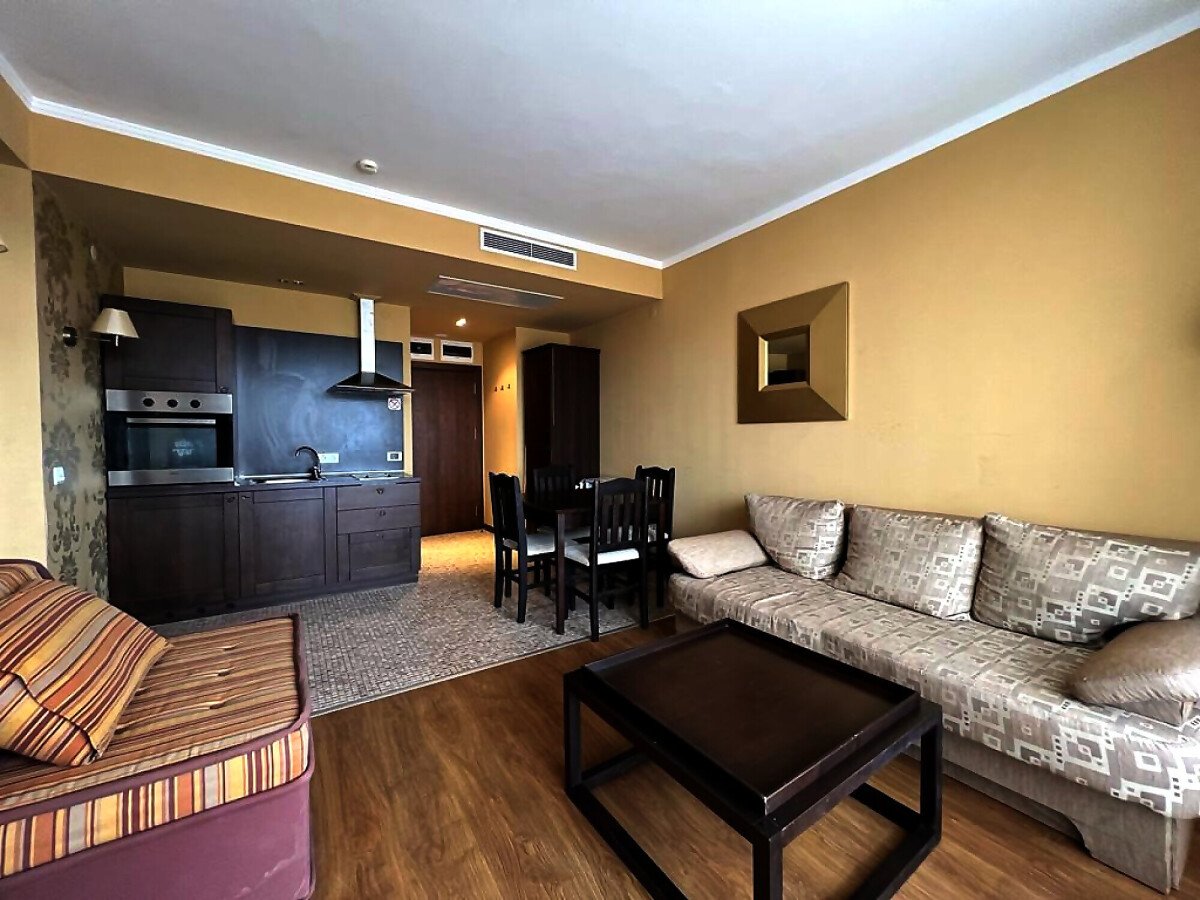 Апартаментът е много функционален, в отлично състояние и има следното разпределение – всекидневна с кухненски бокс, спалня, баня с тоалетна и вана и тераса с гледка към планината. Жилището е напълно обзаведено и оборудвано с всички необходими електроуреди, готово за нанасяне.