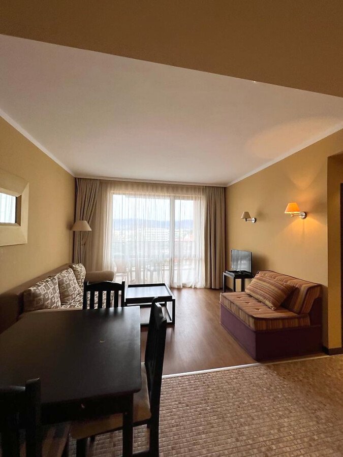 Предлагаме ви за продажба кокетен двустаен апартамент в модерния комплекс „Роял Бийч Барсело“, разположен в най-модерния курорт на българското крайбрежие – Слънчев бряг. Морето и пясъчната плажна ивица се намират само на 50 метра пешеходно разстояние от комплекса. В непосредствена близост може да откриете многобройни и разнообразни места за забавление – кафета, плажни барове, ресторанти, нощни клубове.