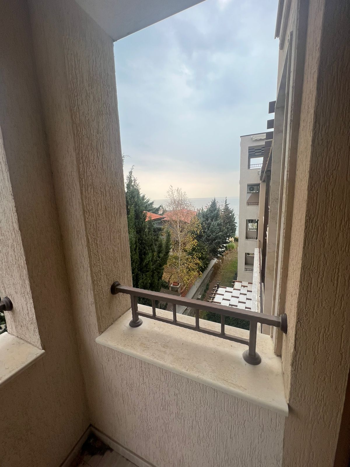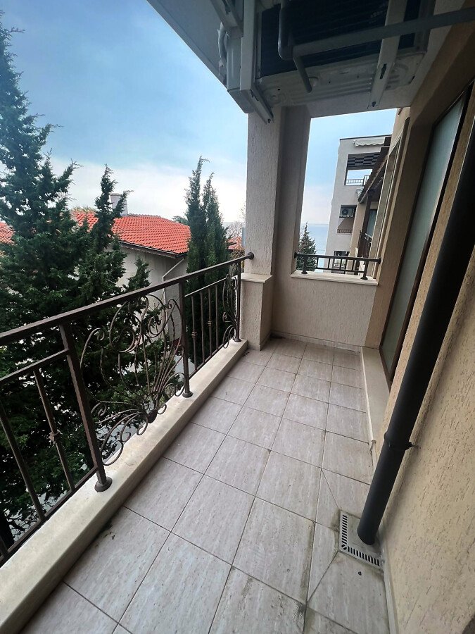 Имотът, който предлагаме, е необзаведен, с площ от 74 кв.м. Има една спалня, баня с тоалетна и душ кабина и тераса с частична гледка към морето.