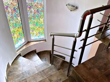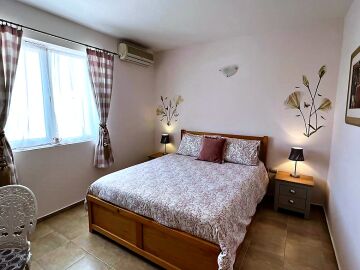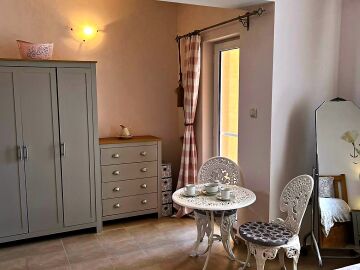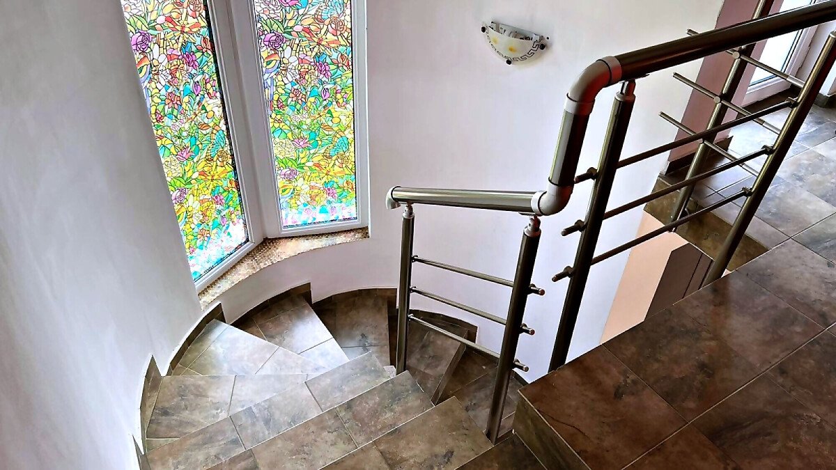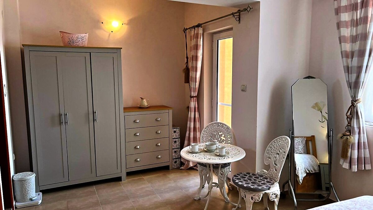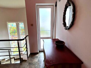 Втори етаж – две спални, баня с тоалетна и тераса с гледка към двора.