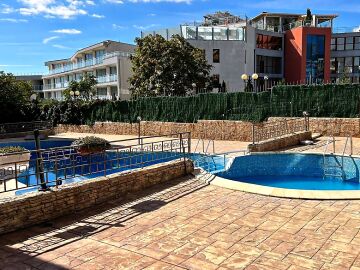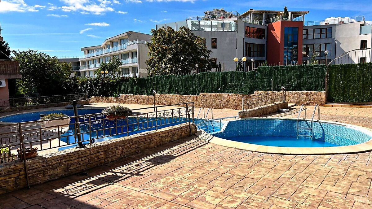 Комплексът е добре поддържан и разполага с плувен басейн, рецепция, охрана, видеонаблюдение и паркинг.