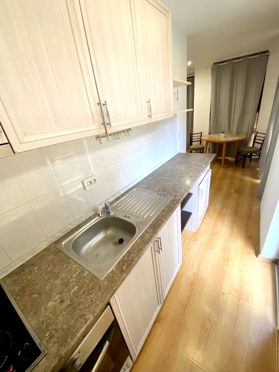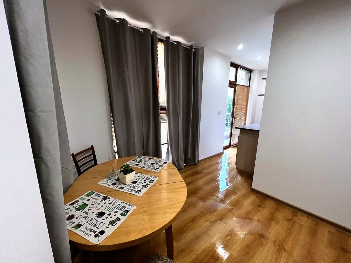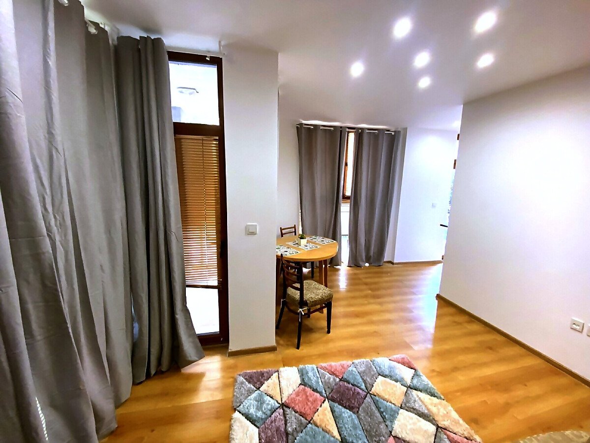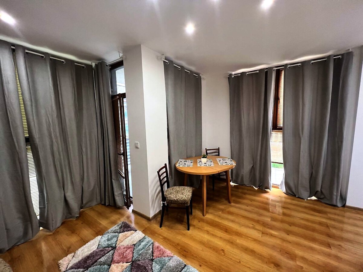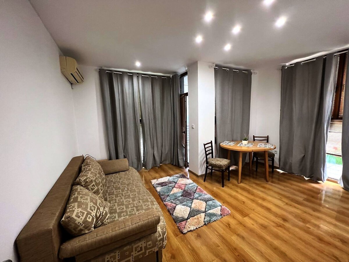 Апартаментът е светъл и просторен. Състои се от входно антре, всекидневна с кухненски бокс, спалня, баня с тоалетна и тераса. Жилището е след направен ремонт, частично обзаведено. Във всяка стая има климатик.