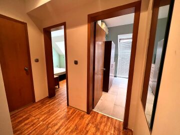 Апартаментът е просторен и много функционален. Разположен е на последния етаж и има следното разпределение – входно антре, всекидневна с кът за хранене и оборудван кухненски бокс, две спални, баня с тоалетна, отделна тоалетна и четири тераси с невероятна гледка към планината. Жилището е напълно обзаведено, като във всяка стая има климатик.