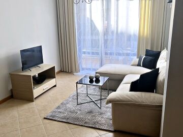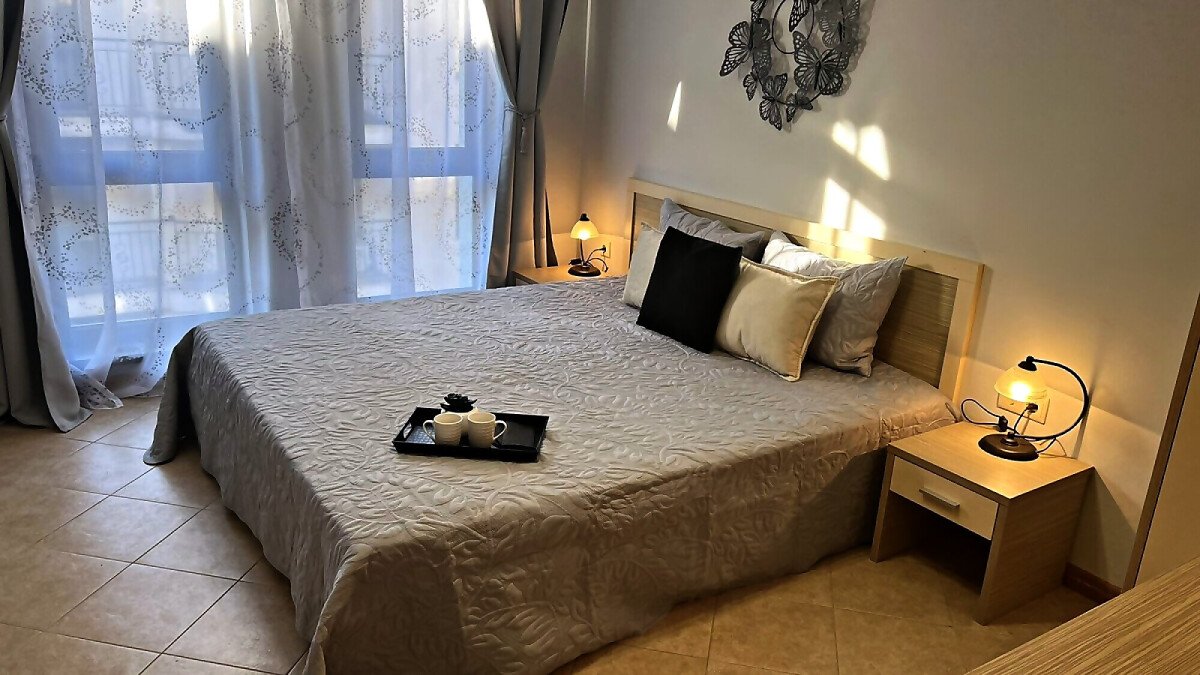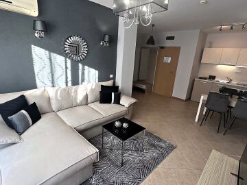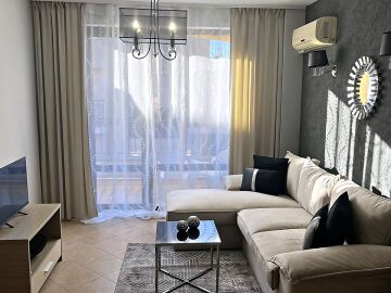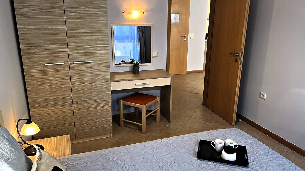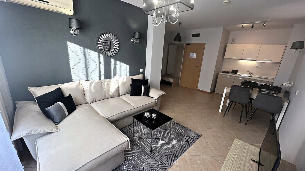 Предлагаме ви за продажба стилно обзаведен двустаен апартамент в комплекс „Роял Сън“, разположен в модерния курорт Слънчев бряг. Само на 300 метра пешеходно разстояние се намират морето и пясъчната плажна ивица.