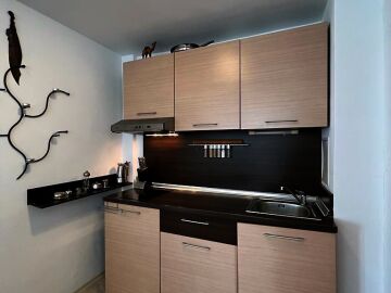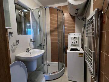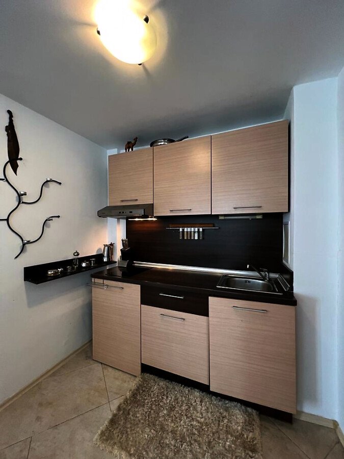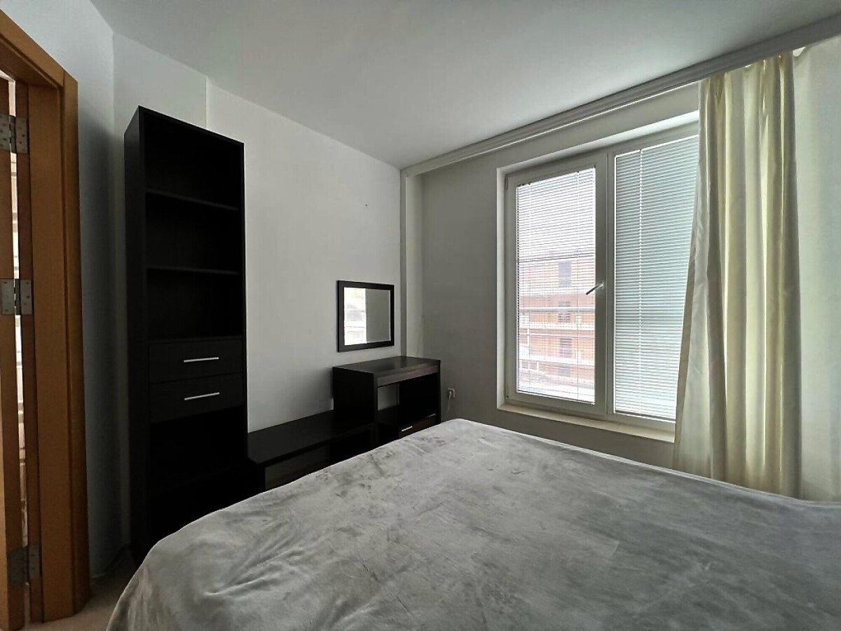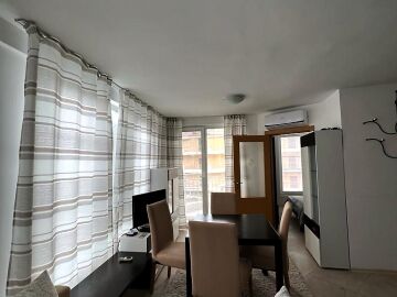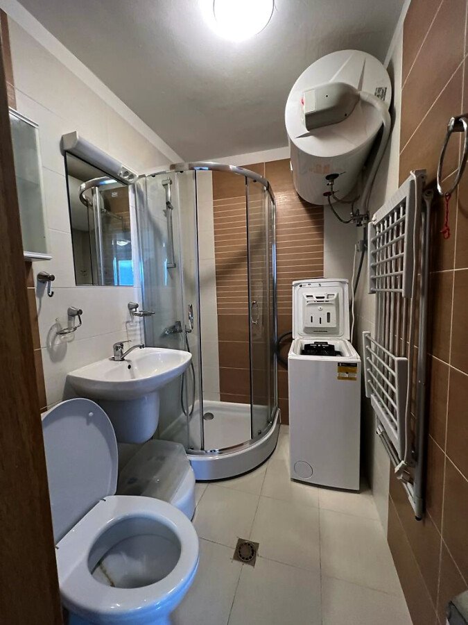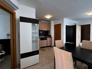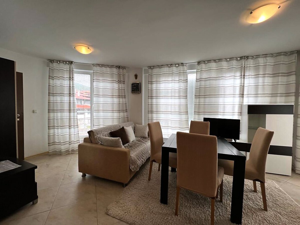 Апартаментът е уютен и много функционален. Състои се от всекидневна с кухненски бокс и кът за хранене, спалня, баня с тоалетна и душ кабина и тераса с невероятна гледка към морето, басейна и планината! Жилището е в отлично състояние, оборудвано с качествена техника и напълно обзаведено, готово за нанасяне.