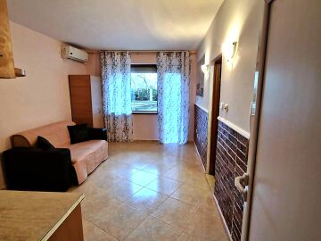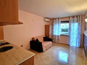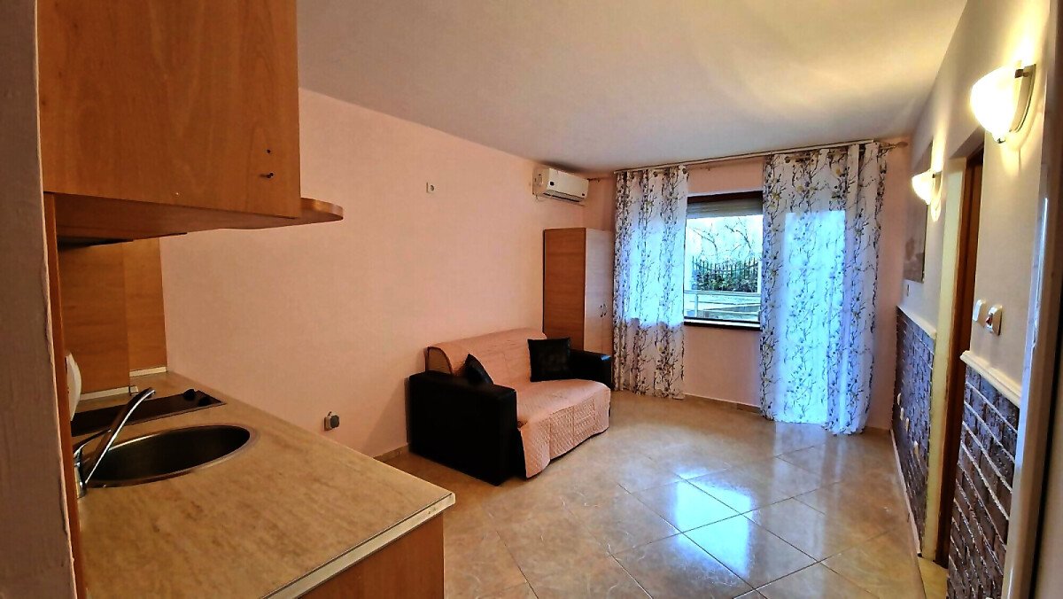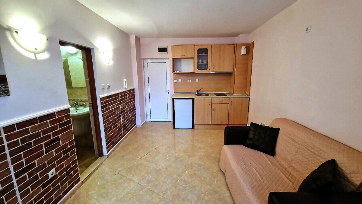 Студиото е разположено на първи етаж, с площ от 27 кв.м. и следното разпределение – всекидневна с обособен кухненски бокс, баня с тоалетна и тераса с частична гледка към басейна. Апартаментът е с южно изложение.