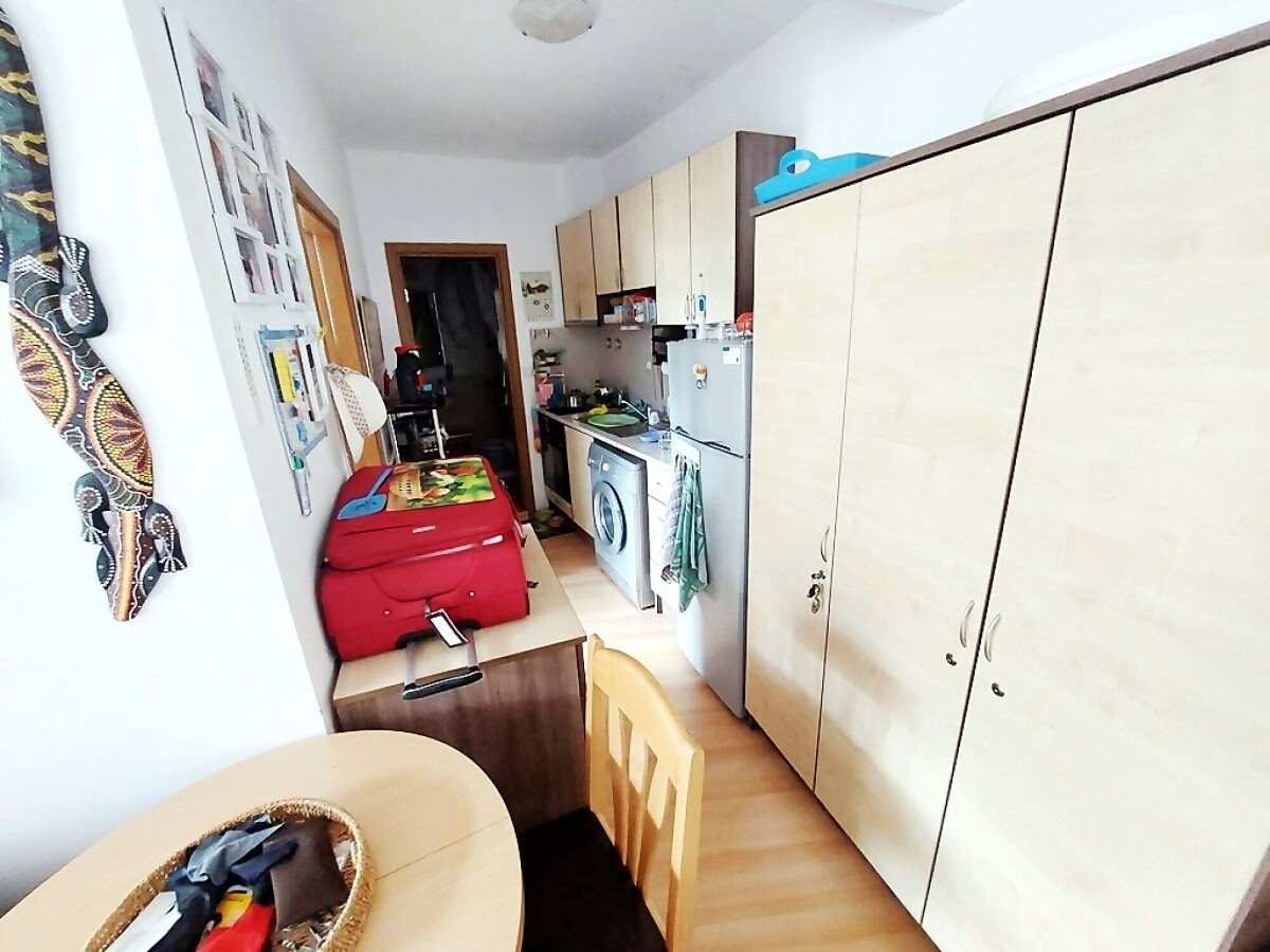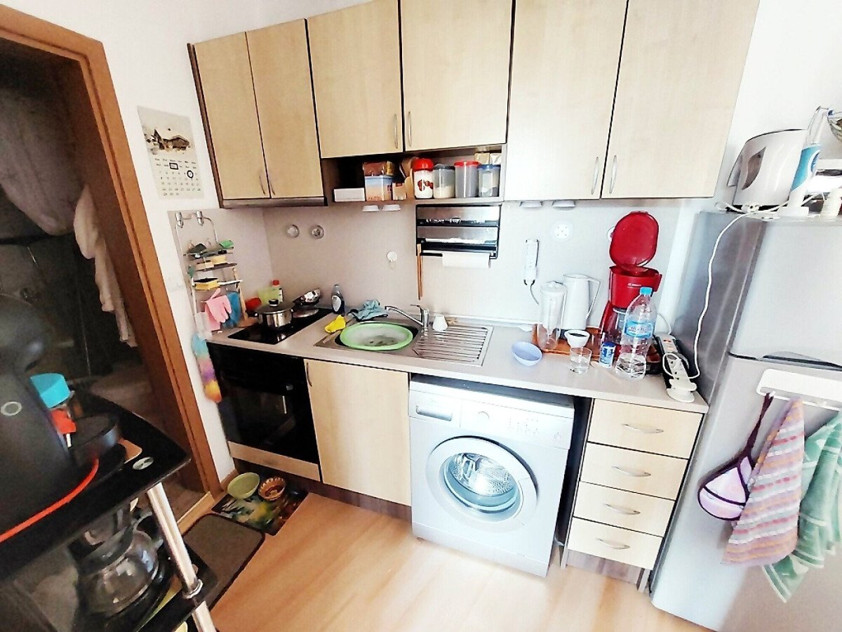 Апартаментът се състои от всекидневна с кухненски бокс и обособен кът за хранене, спалня, баня с тоалетна и душ кабина и тераса. Жилището се продава оборудвано с битова техника и напълно обзаведено, готово за нанасяне.