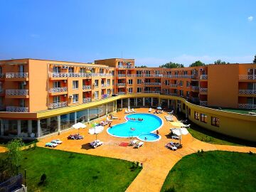 Комплексът е добре поддържан и предлага удобства като открит басейн, ресторант и бар, красиво озеленяване, детска площадка, магазини, паркинг.
