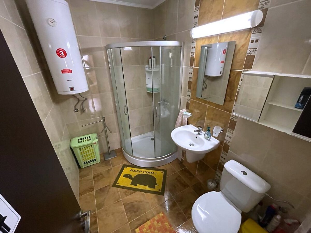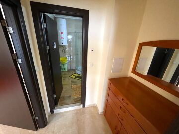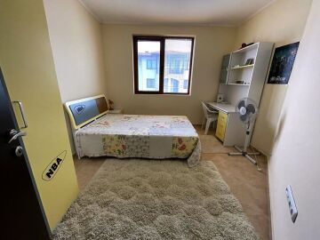 Апартаментът се намира на пети, последен етаж и има площ 60 кв.м. Състои се от малък коридор, всекидневна с кухненски бокс и кът за хранене, спалня, баня с тоалетна и душ кабина и тераса с частична гледка към морето. Жилището е в идеално състояние, оборудвано с техника и напълно обзаведено, готово за нанасяне.