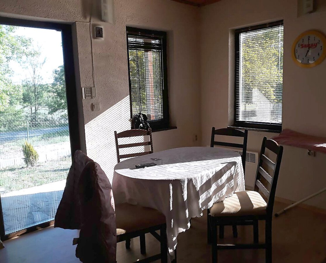 Къщата се отоплява с камина, има инсталирани и слънчеви панели.