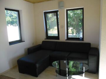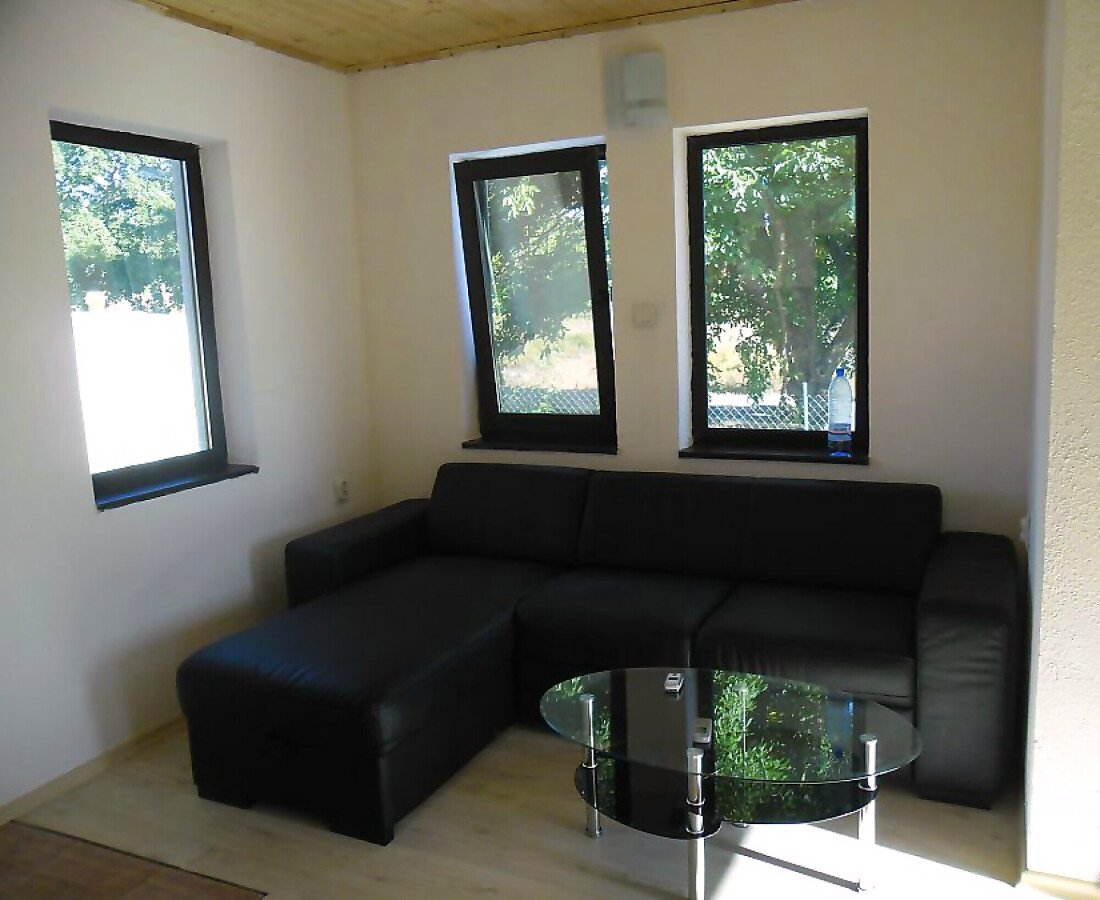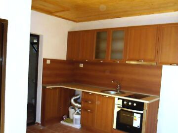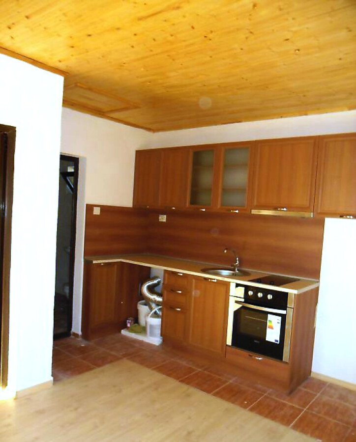 Къщата е обзаведена с нови мебели - в спалнята има гардероб, двойно легло, нов матрак, а в дневната са разположени разтегателен кожен диван и стъклена маса.Кухненският бокс е направен по поръчка и е с италиански кухненски електроуреди - вградена печка и фурна, хладилник.
