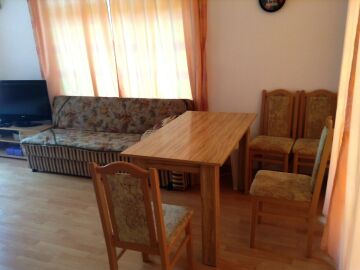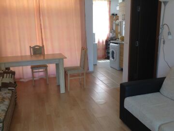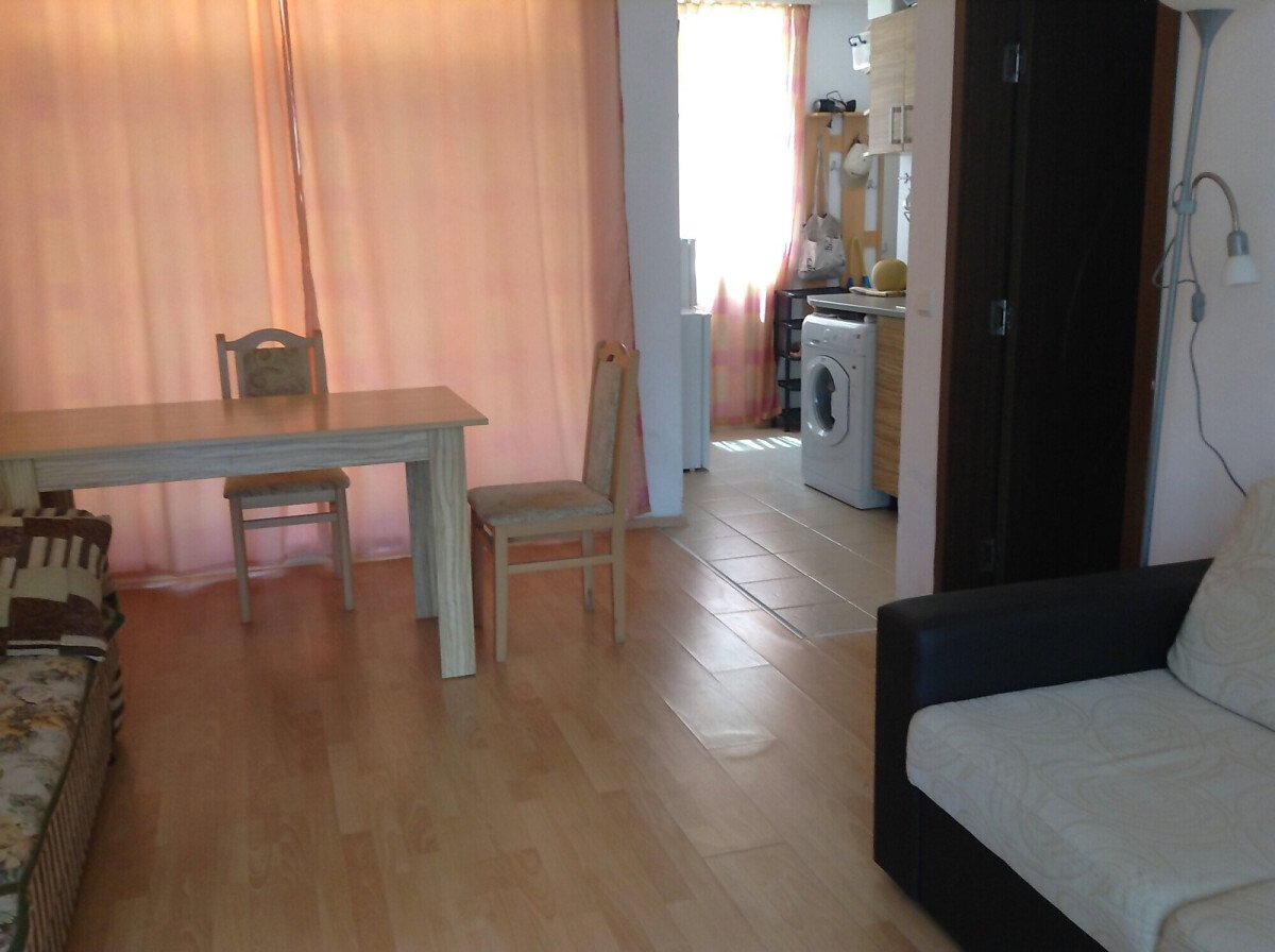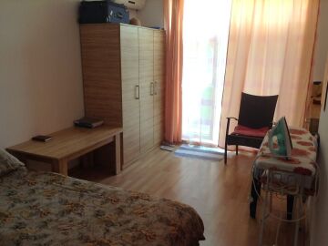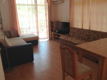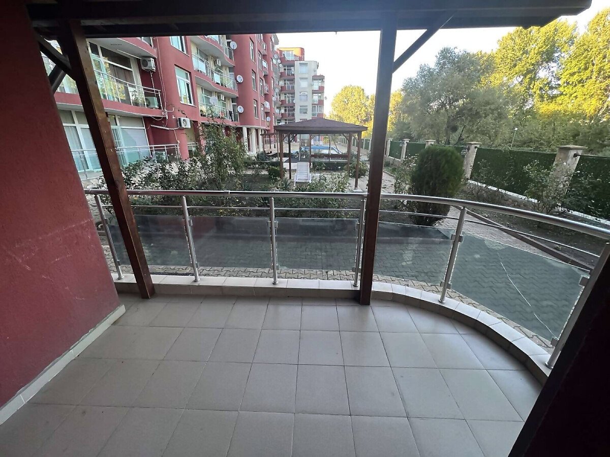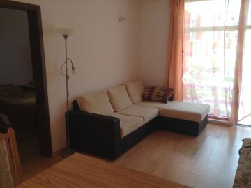 Апартаментът е на партерен етаж, с площ 65 кв.м. и следното разпределение – всекидневна с кухненски бокс, спалня, баня с тоалетна и голяма тераса с гледка към басейна и вътрешната част на комплекса. Напълно обзаведен и оборудван с техника, готов за нанасяне.