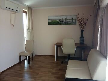 Предлагаме ви за продажба двустаен апартамент в комплекс „Шато Сий Уинд“, разположен на самия морски бряг между известните курорти Слънчев бряг и Свети Влас. Комплексът се намира в район, предлагащ уникалното съчетание между чист планински и морски въздух. Това прави имотът подходящ както за лятна почивка, така и за целогодишно живеене.