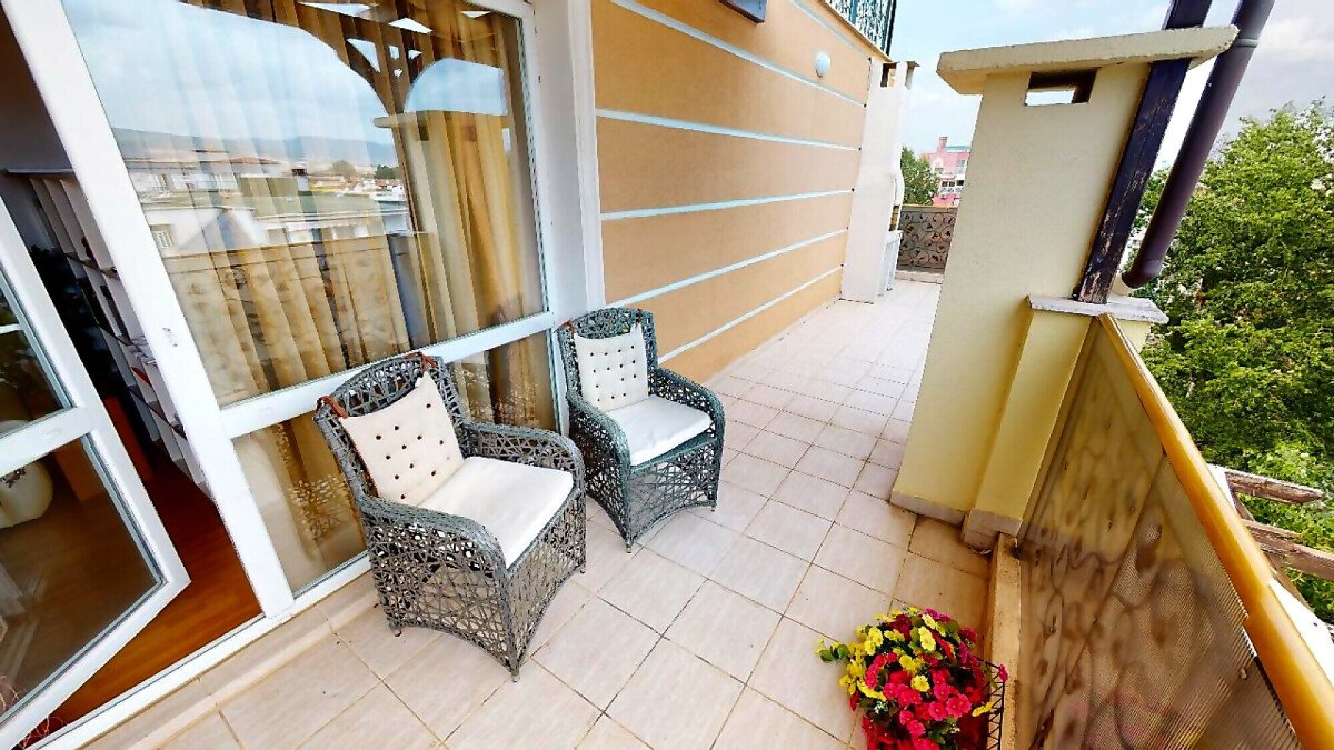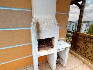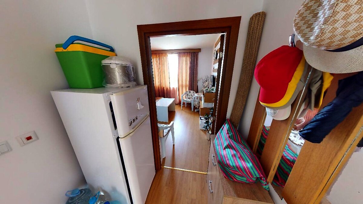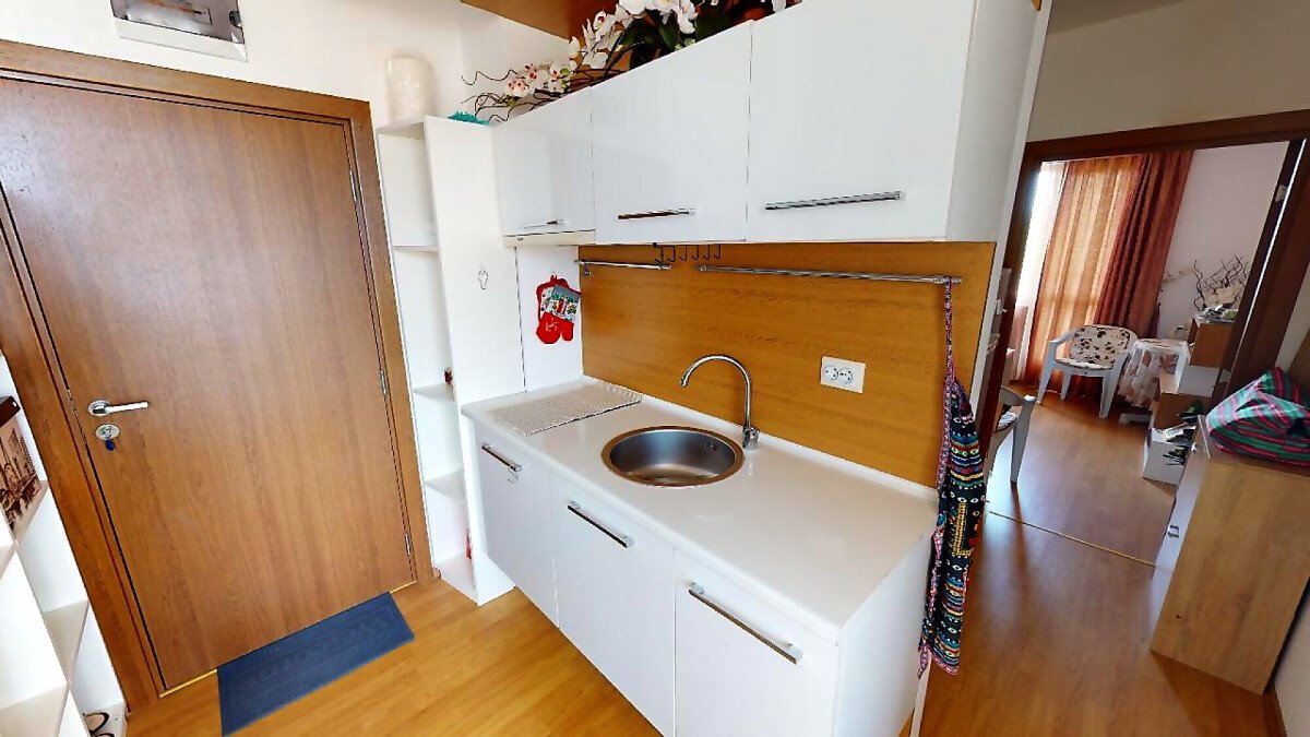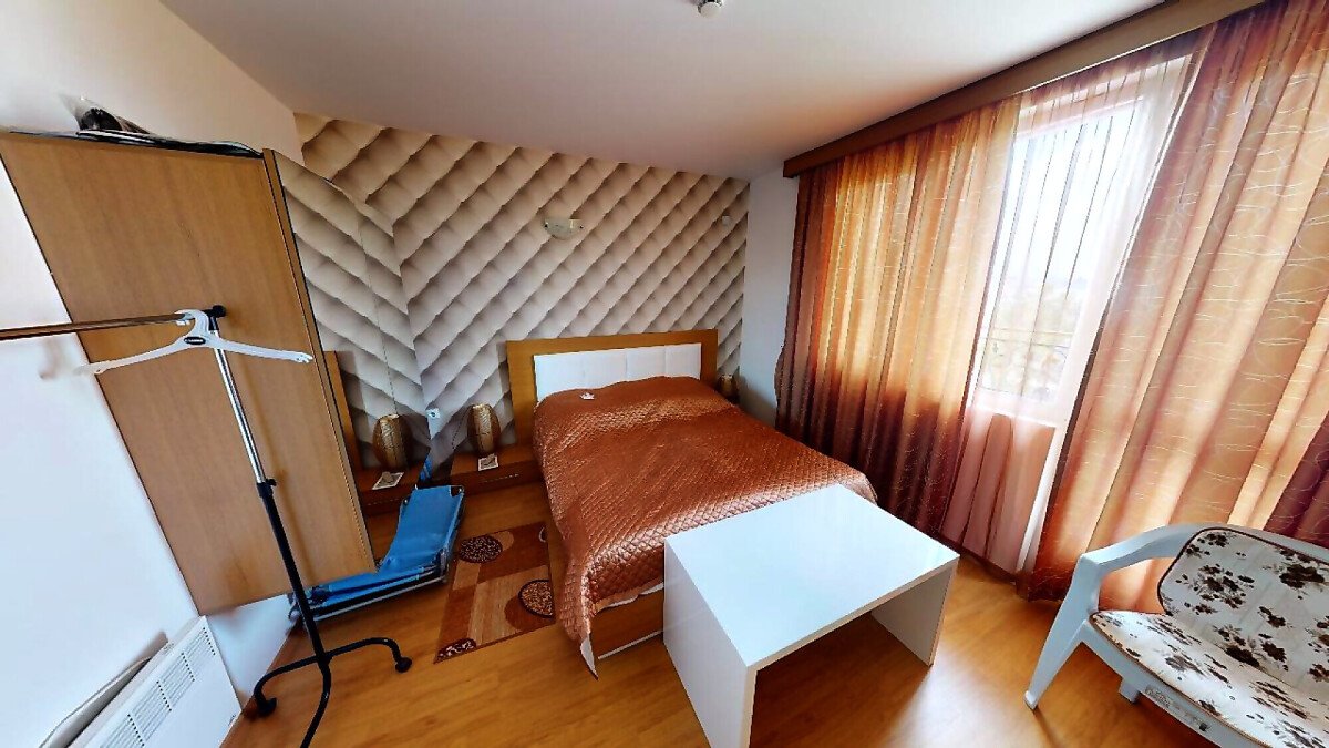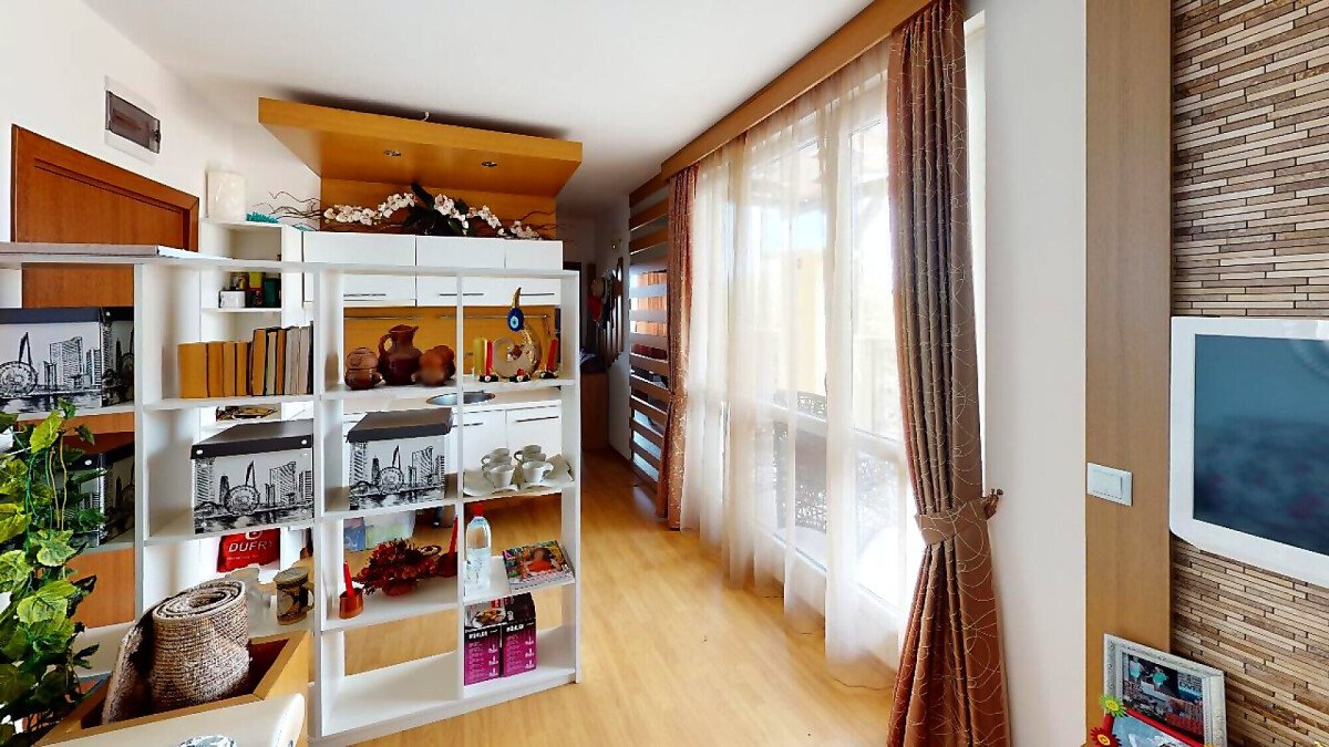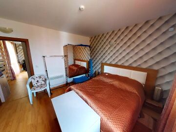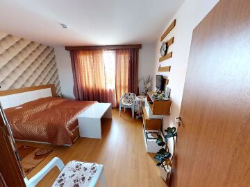 Апартаментът е много уютен и функционален. Състои се от входно антре, всекидневна с обособен кухненски бокс, баня с тоалетна и душ кабина, спалня и огромна тераса с барбекю и гледка към планината. Продава се оборудван с хубава техника и напълно обзаведен с качествени мебели, в отлично състояние.