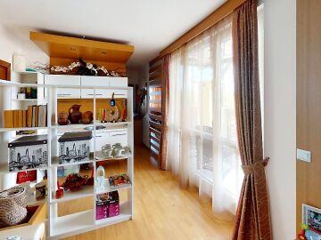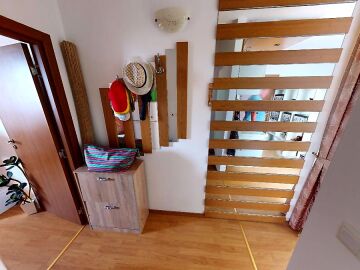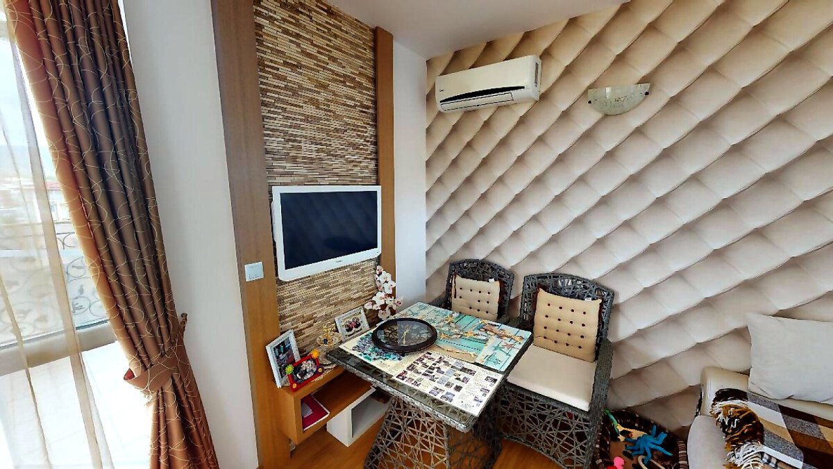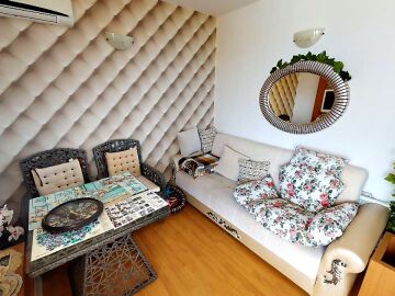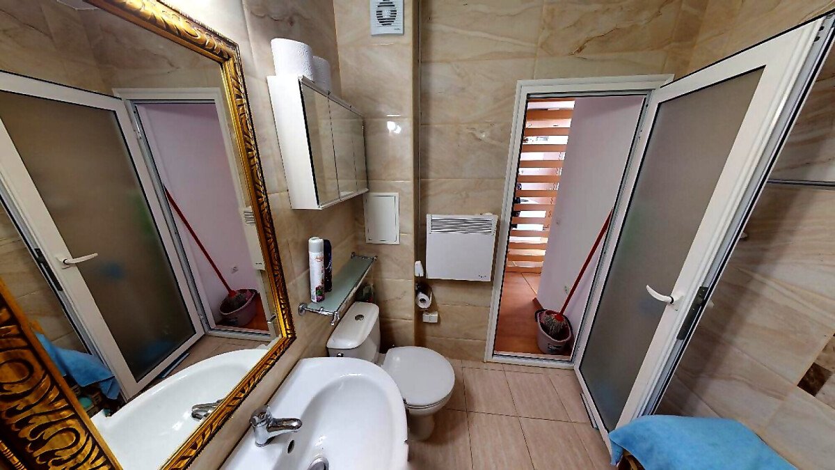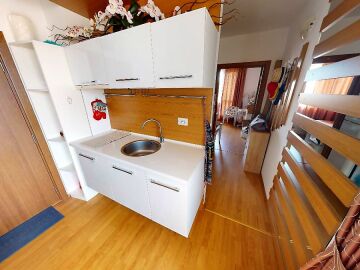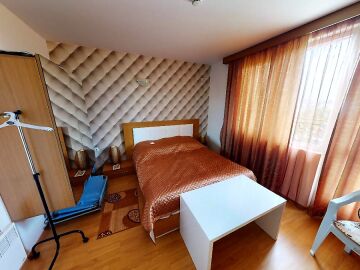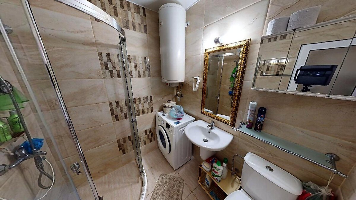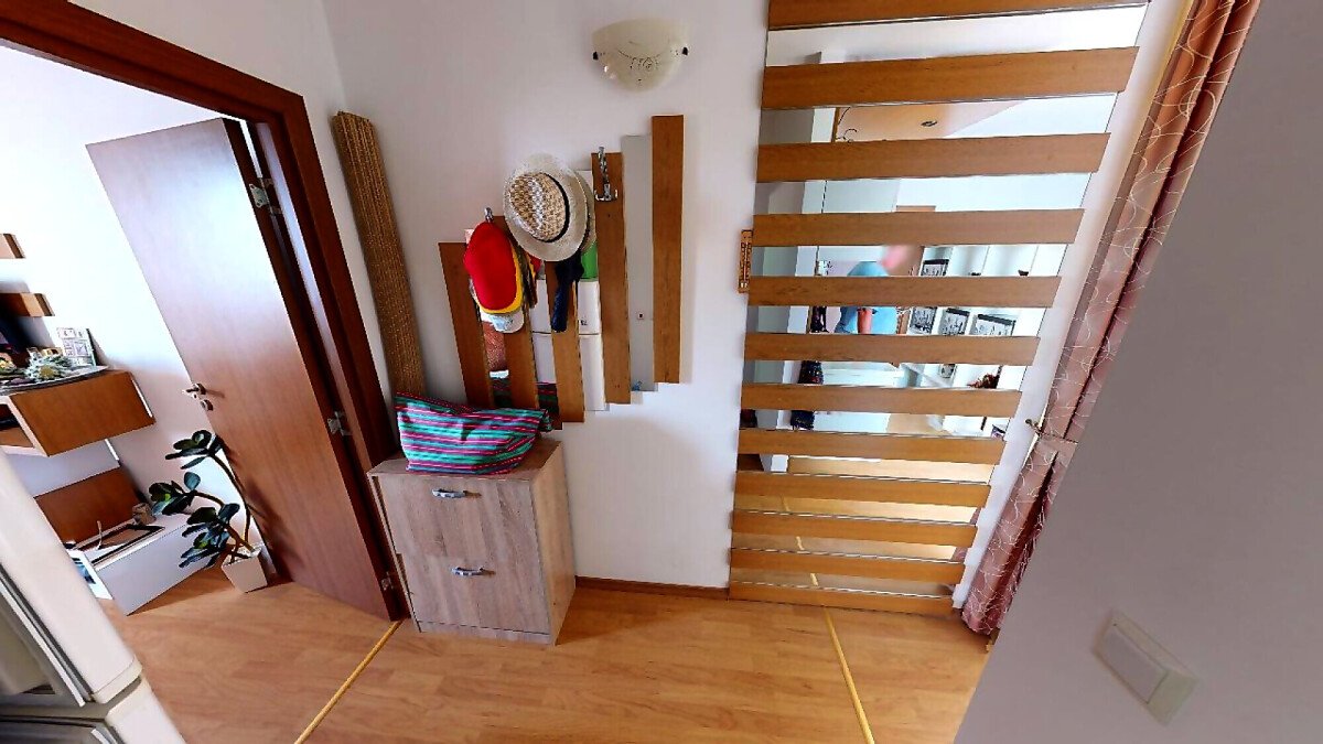 Апартаментът е много уютен и функционален. Състои се от входно антре, всекидневна с обособен кухненски бокс, баня с тоалетна и душ кабина, спалня и огромна тераса с барбекю и гледка към планината. Продава се оборудван с хубава техника и напълно обзаведен с качествени мебели, в отлично състояние.