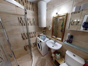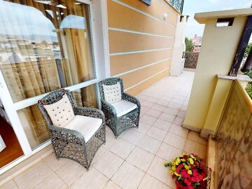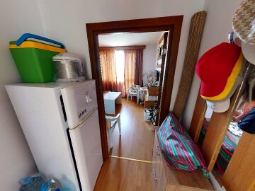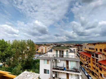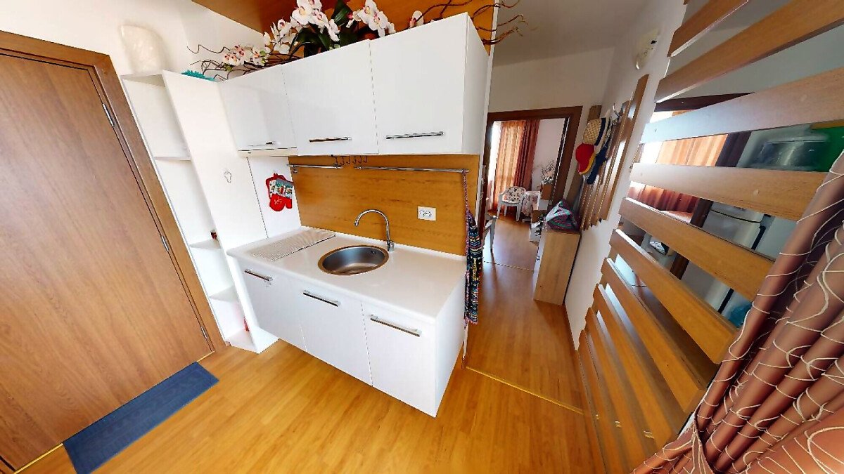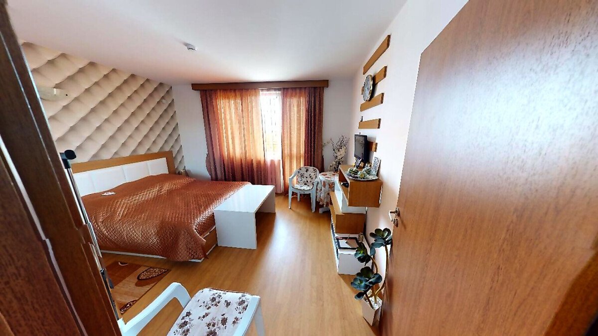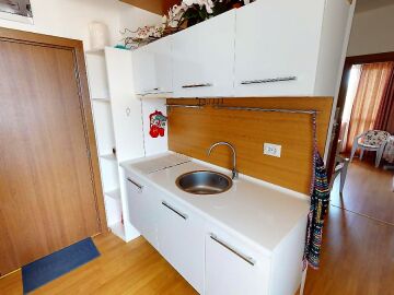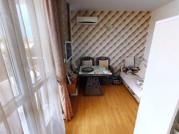 Предлагаме ви за продажба страхотен двустаен апартамент във великолепен ваканционен комплекс „Суит Хоумс 1“, разположен в централната част на модерния курорт Слънчев бряг. Местоположението е отлично – в тих и спокоен район, на 500 метра от морето и плажната ивица, в близост до централната алея на курорта. Това прави имотът подходящ както за лятна почивка, така и за целогодишно ползване или отдаване под наем.