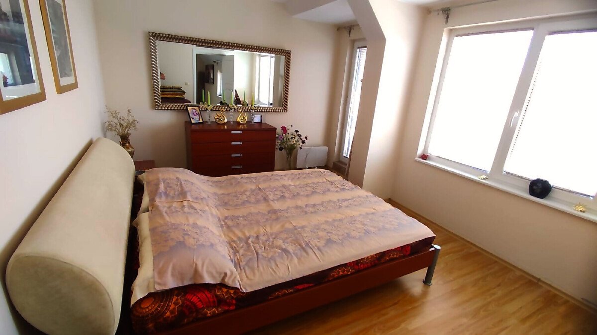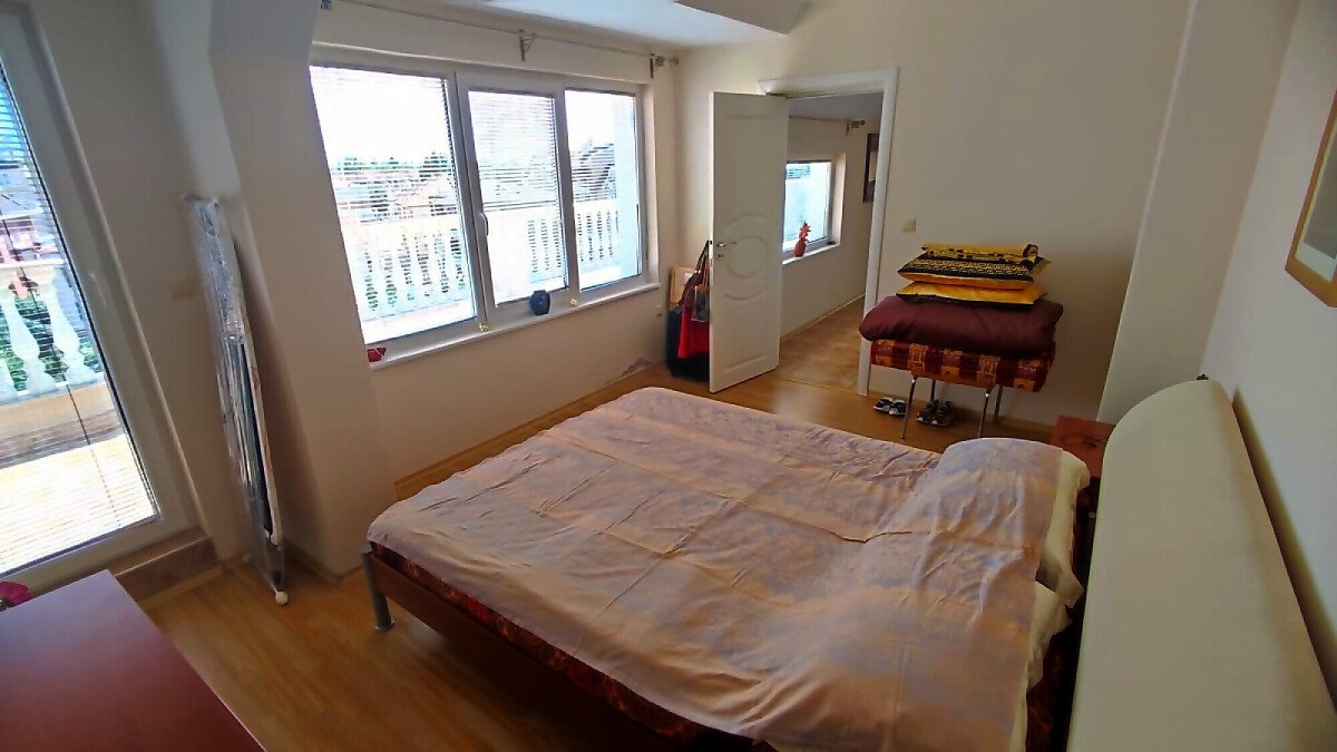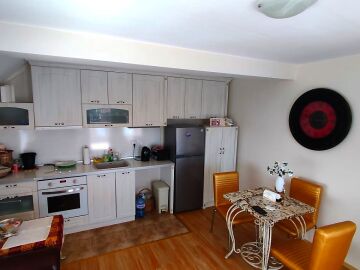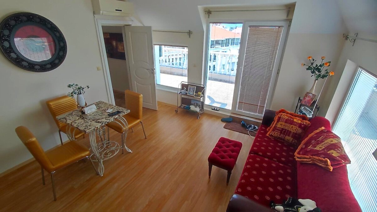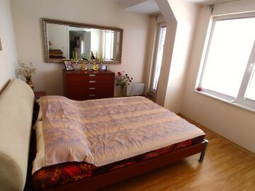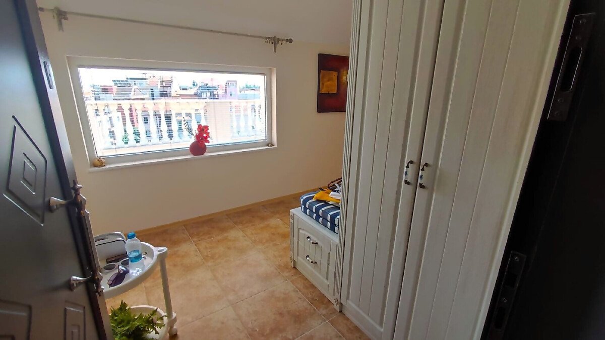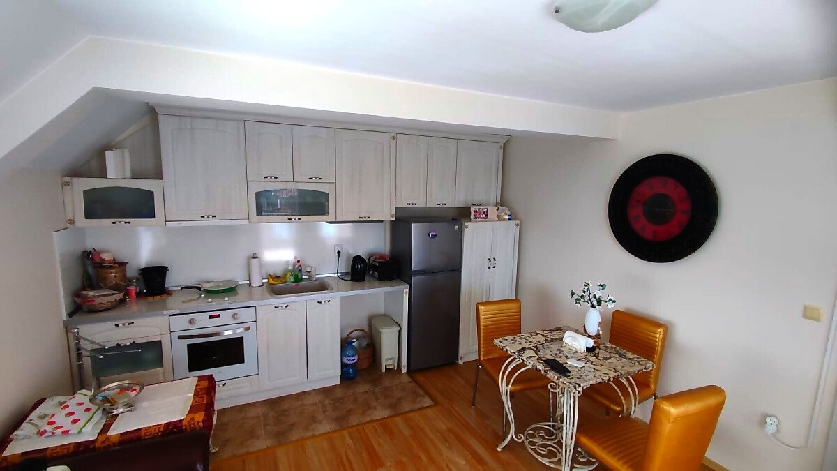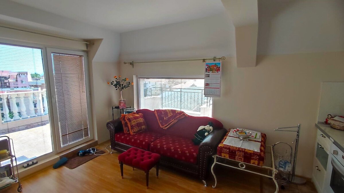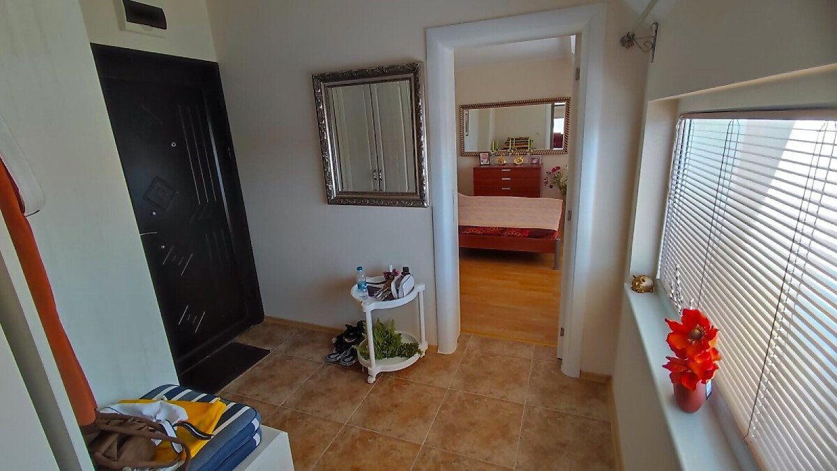 Апартаментът е разположен на последен етаж, тип пентхаус. Сградата разполага с асансьор. Жилището се състои от входно антре, всекидневна с кухненски бокс и обособен кът за хранене, баня с тоалетна и душ кабина, спалня и огромна тераса с панорамна гледка към града. Продава се оборудван с качествена техника, напълно обзаведен, готов за нанасяне.