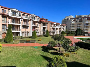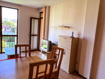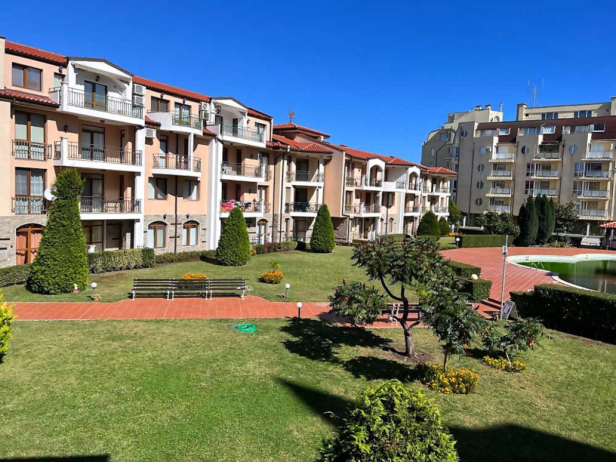 Местоположението е отлично – в спокойна част на курорта, но същевременно в близост до магазини, заведения, плажни барове, ресторанти, удобни автобусни спирки. Това прави имотът чудесна инвестиция – подходящ както за лятна почивка или сезонно отдаване под наем, така и за целогодишно живеене.