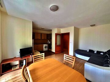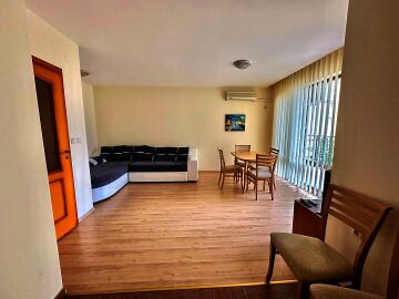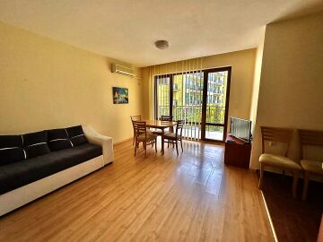 Апартаментът е просторен, светъл и много функционален. Състои се от входно антре, голяма всекидневна с обособен кухненски бокс и трапезария, баня с тоалетна и душ кабина, спалня и тераса с частична гледка към морето и вътрешната територия на комплекса. Във всяка стая има монтиран климатик.