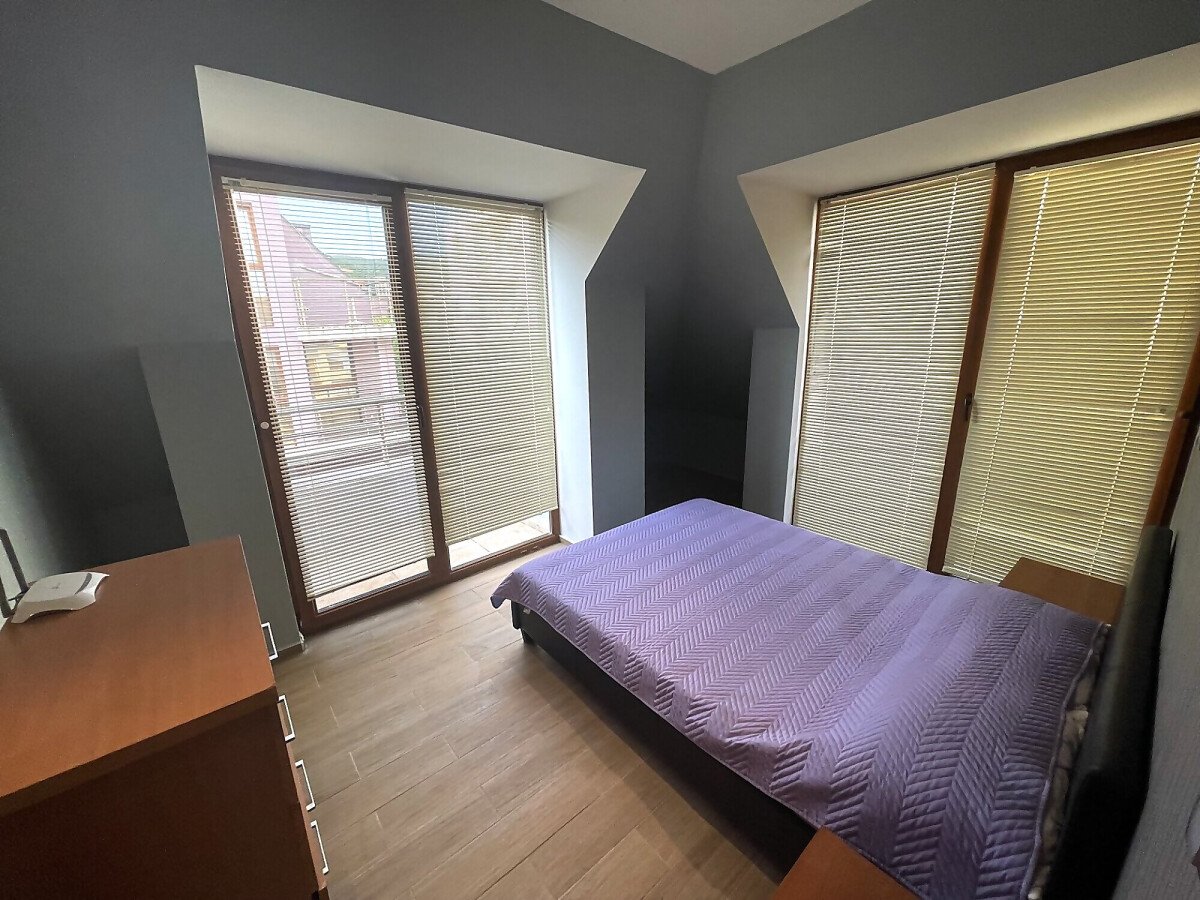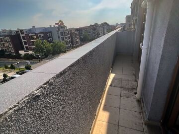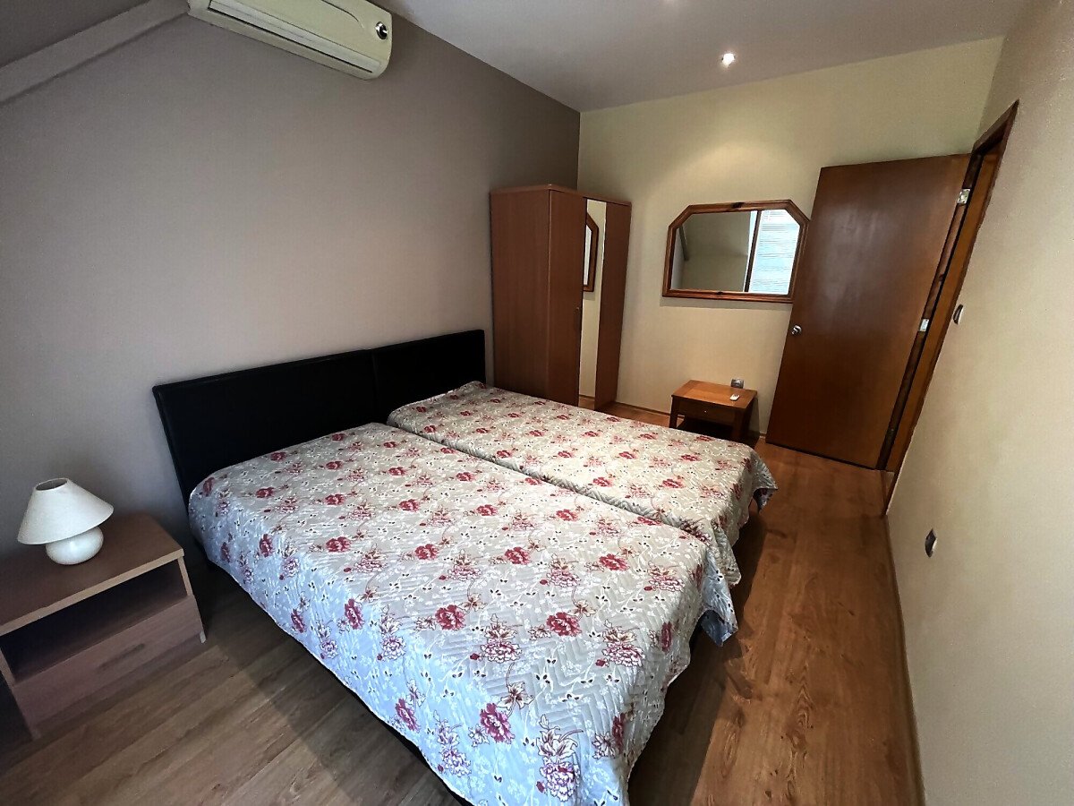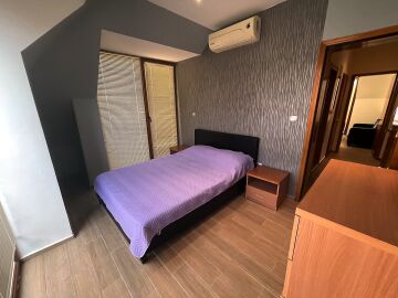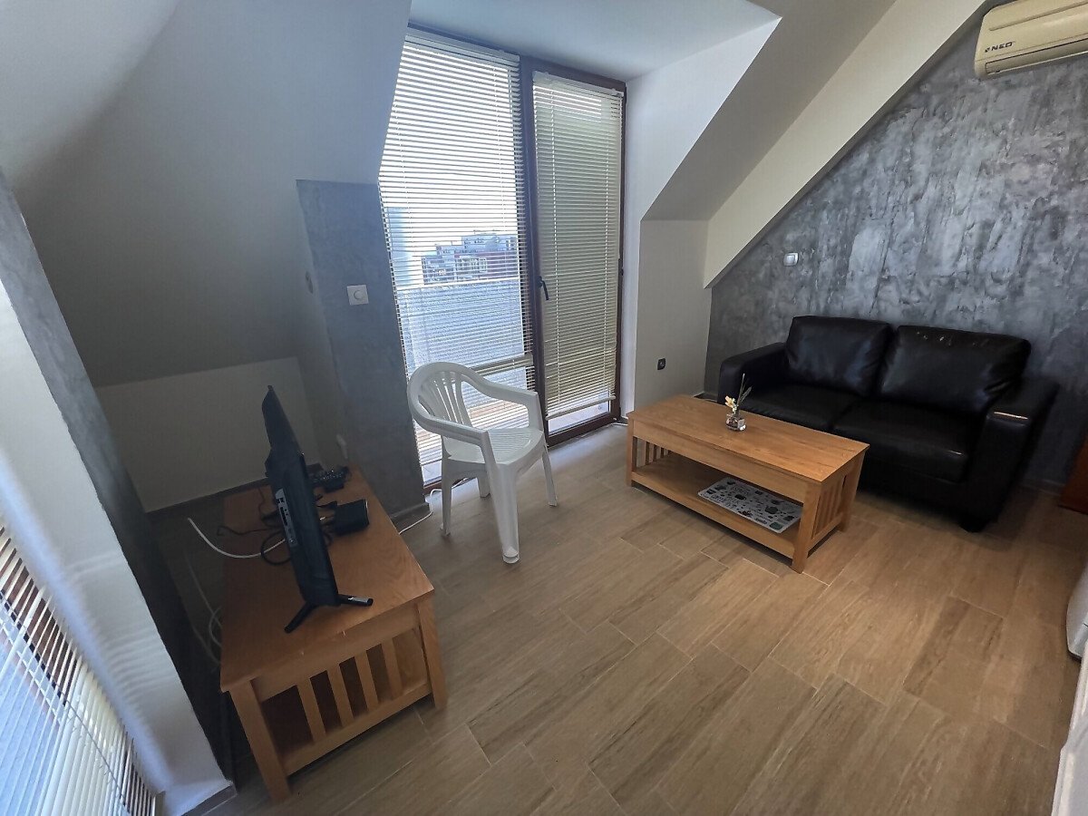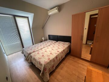 Апартаментът е много функционален и просторен, разположен на последния етаж. Състои се от малък коридор, всекидневна с оборудван кухненски бокс, две спални, две бани с тоалетни и две тераси. От всяка стая има изход към терасите. Имотът е в идеално състояние, с монтиран климатик във всяко помещение.
