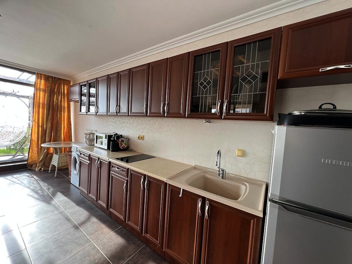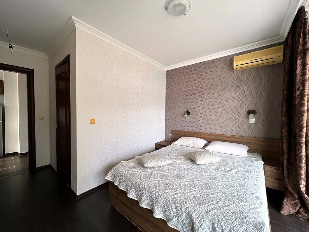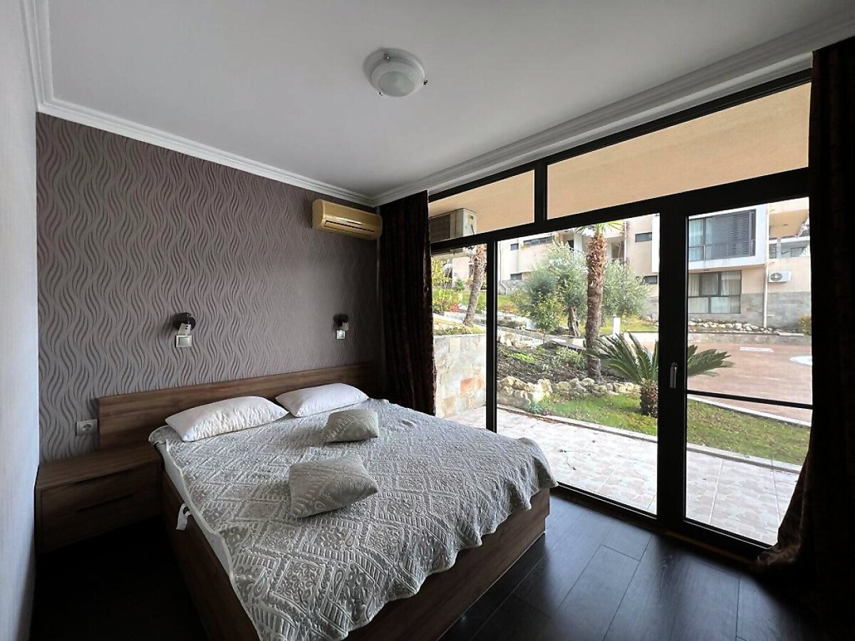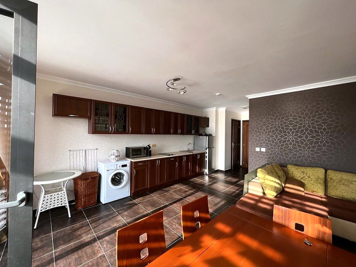 Апартаментът е просторен, много стилен и модерен. Състои се от голяма всекидневна с кухненски бокс и трапезария, баня с тоалетна и вана, спалня, отделна тоалетна и самостоятелна веранда с невероятна гледка към морето и басейна. Жилището е оборудвано с качествена техника, обзаведено с хубави мебели, готово за нанасяне.