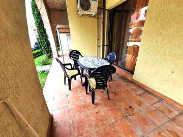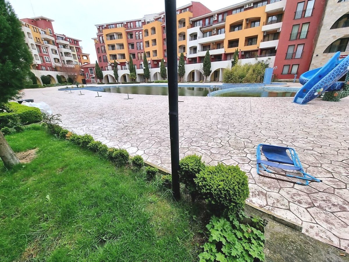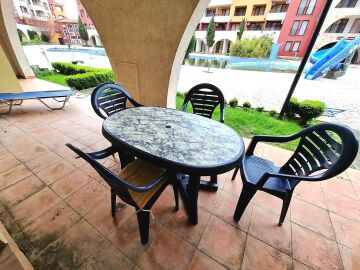 Жилището е с площ 65 кв.м., разположено на партерен етаж. Състои се от входно антре, всекидневна с кухненски бокс, обособена холна част, баня с тоалетна и собствена веранда с изход и гледка към басейна.