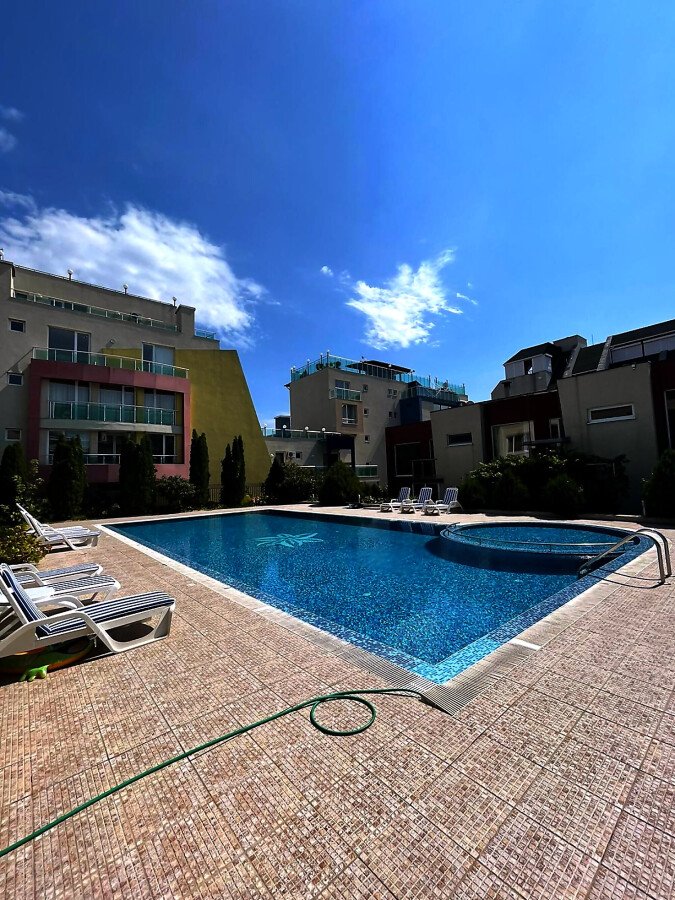 Комплексът е добре поддържан, от закрит тип и разполага с два басейна за възрастни с детска секция, СПА център, детска площадка, красиво озеленени площи, видеонаблюдение, охрана, собствен паркинг.