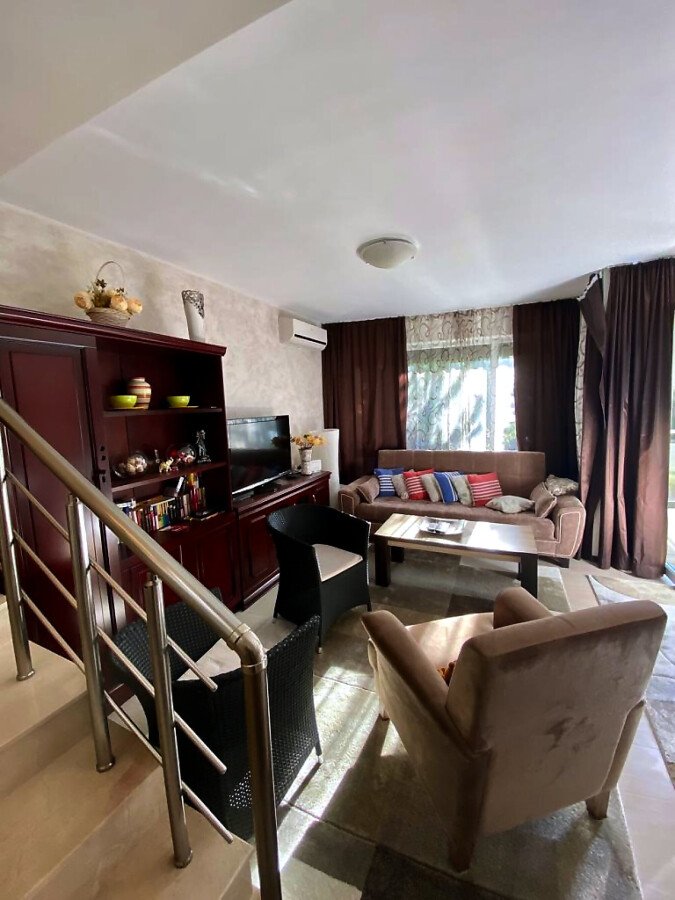 Предлагаме ви за продажба двуетажна къща в комплекс „Мирни“, разположен в елитния и спокоен курорт Свети Влас. Само на 150 метра пешеходно разстояние се намират морето и спокойните плажове.