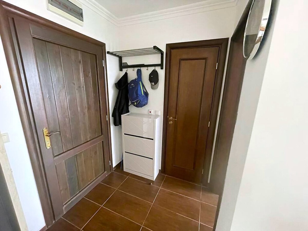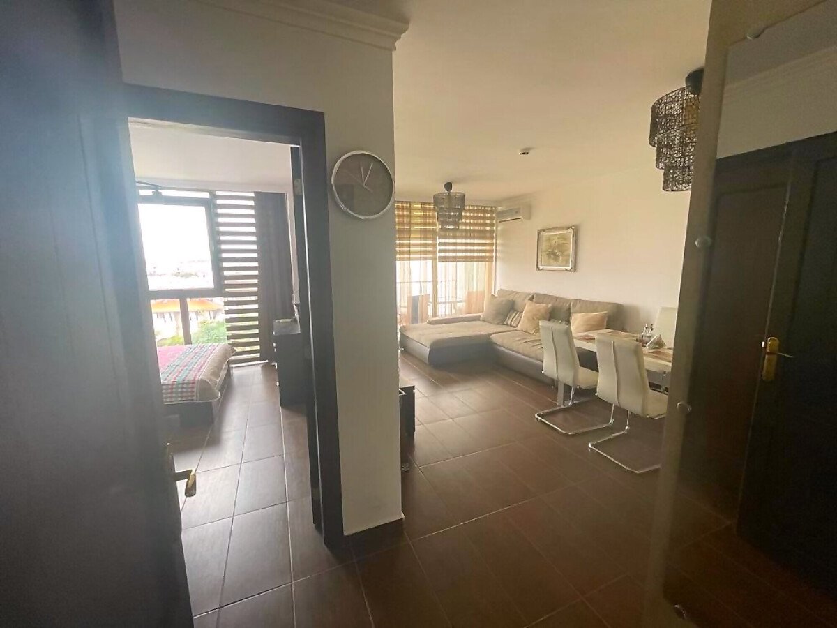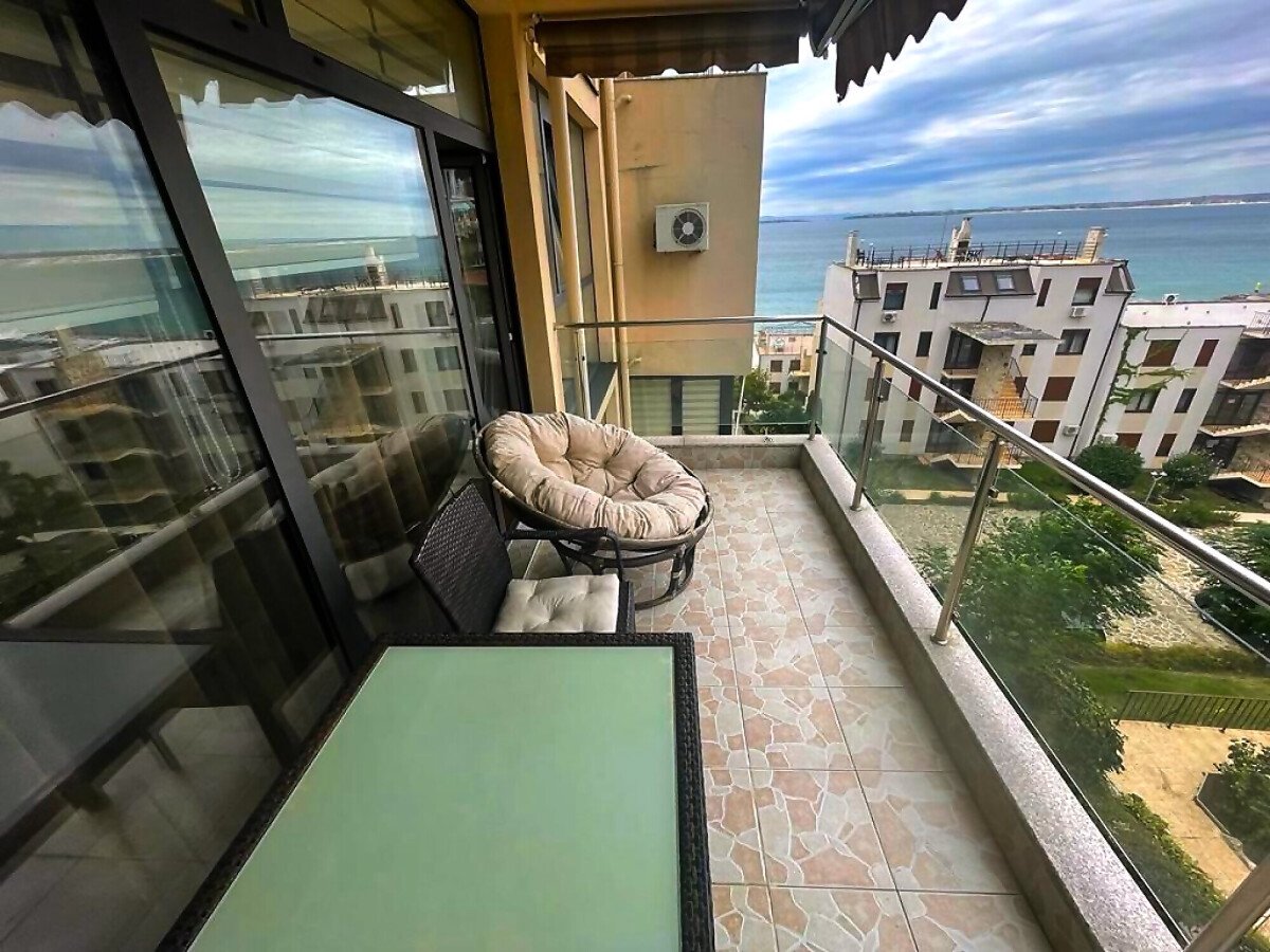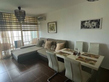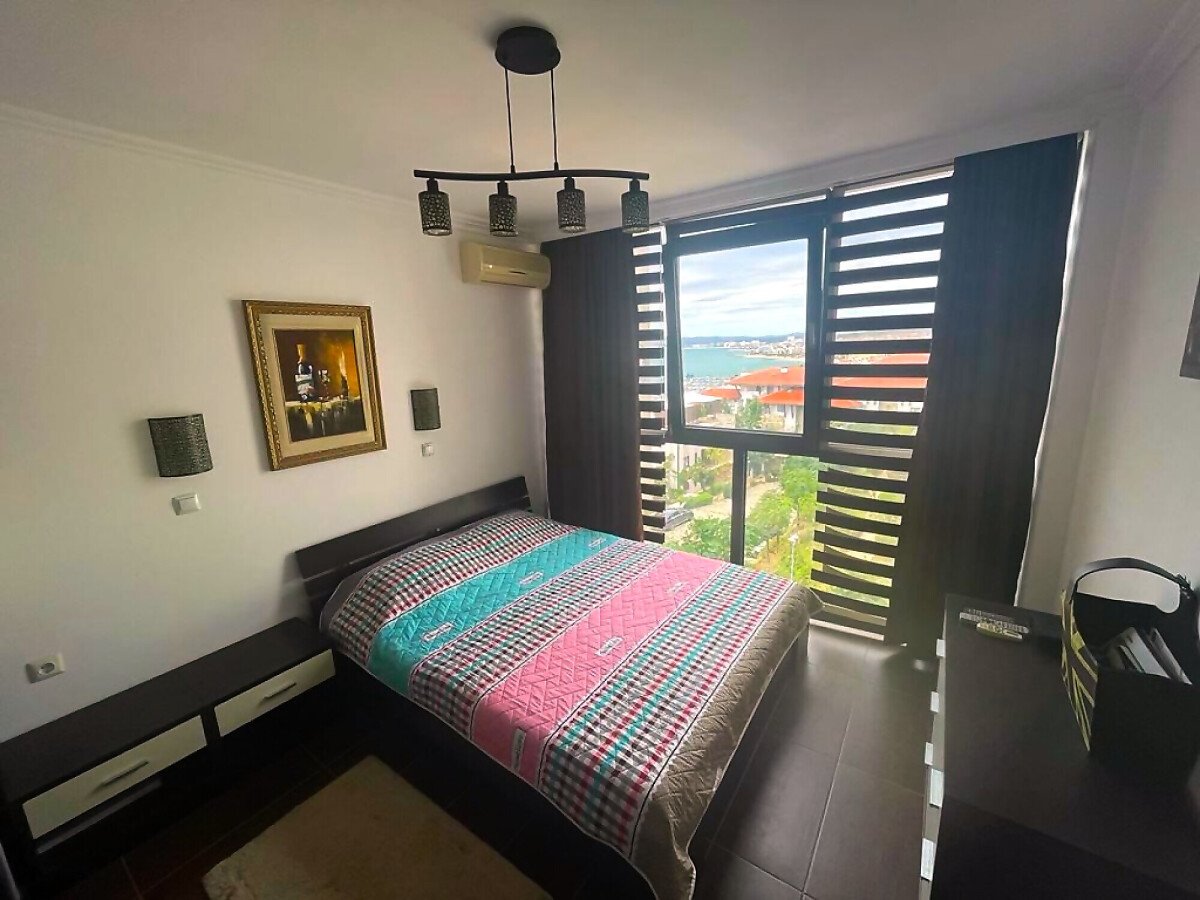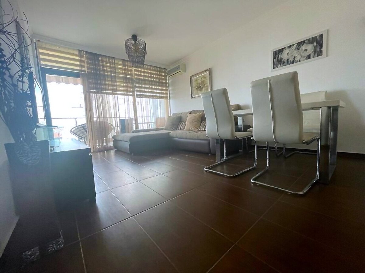 Апартаментът е светъл и много функционален. Състои се от входно антре, всекидневна с кухненски бокс и трапезария, спалня, баня с тоалетна и душ кабина, голяма тераса с панорамна гледка към морето. Имотът е оборудван с качествена техника, напълно обзаведен, готов за нанасяне.