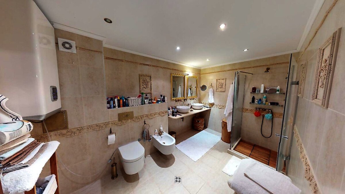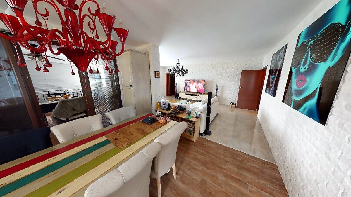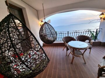Жилището е луксозно обзаведено, с площ 250 кв.м., разположено на втори етаж. Сградата разполага с асансьор. Имотът се състои от входно антре, просторна всекидневна с трапезария и голяма кухня, 3 спални, 2 бани с тоалетна и душ кабина, 3 тераси с прекрасна панорамна гледка към морето и залива. Терасите са просторни, обзаведени с качествени мебели и разкриват невероятни, живописни гледки.
