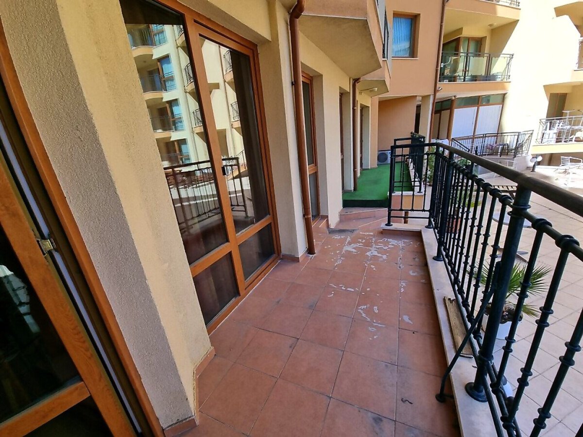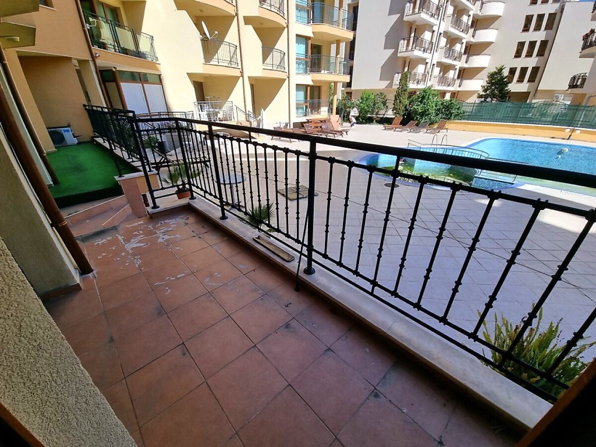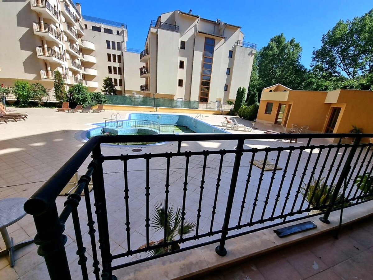 Апартаментът е светъл, уютен, функционален и просторен. Състои се от входно антре, всекидневна с трапезария и кухненски бокс, баня с тоалетна и душ кабина, спалня, тераса с красива гледка към басейна. Продава се оборудван с необходимата техника, напълно обзаведен, готов за нанасяне.