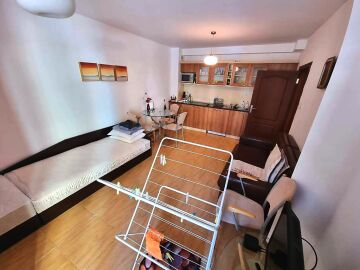 Предлагаме ви за продажба двустаен апартамент в комплекс „Амадеус 1“, разположен в северната част на един от най-модерните и атрактивни курорти на българското крайбрежие - Слънчев бряг. Районът е тих и спокоен, само на 600 метра разстояние от морето и пясъчната плажна ивица. Инфраструктурата е добре развита – в близост има магазини, ресторанти, банка, медицински център, автобусни спирки. Всичко това прави имотът подходящ както за лятна почивка, така и за целогодишно ползване.