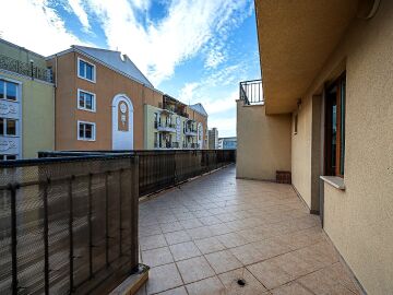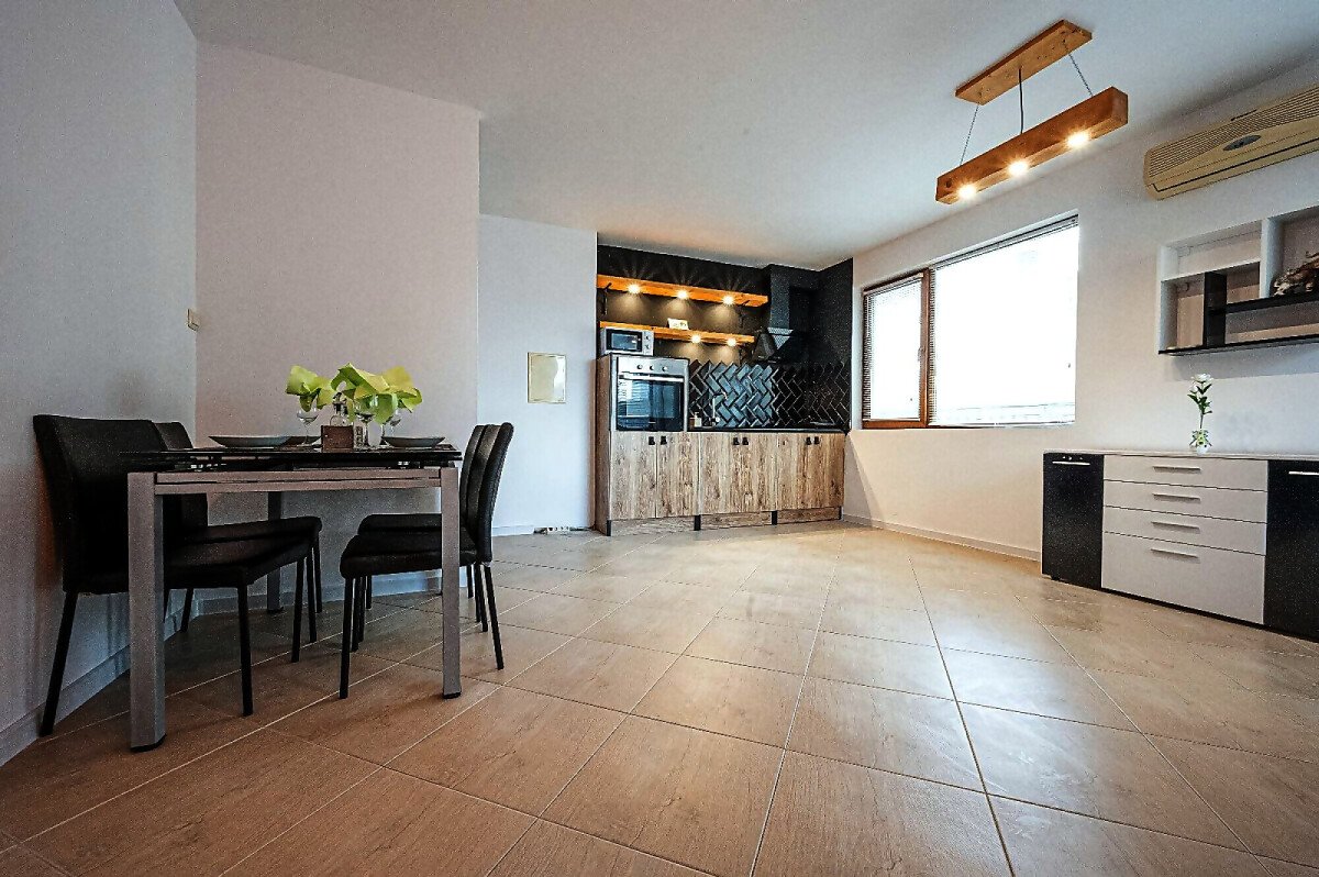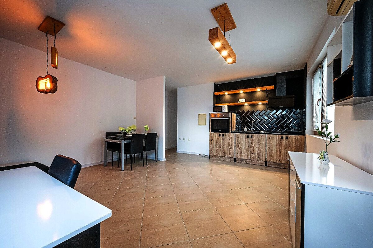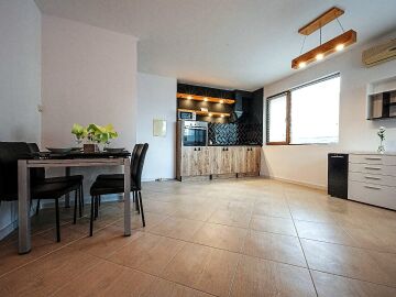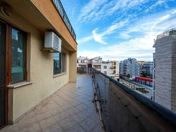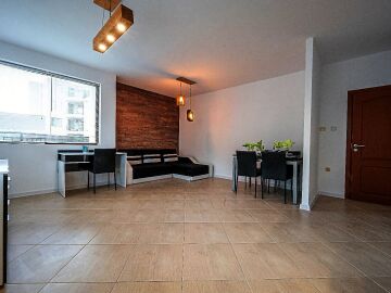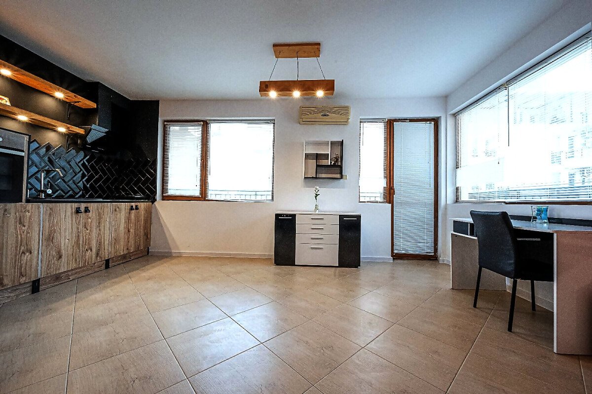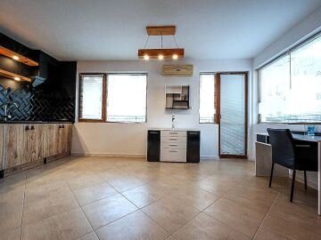 Апартаментът е много голям, функционален и светъл. Състои се от входно антре, просторна всекидневна с кухненски бокс и трапезария, баня с тоалетна и душ кабина, спалня, огромна панорамна тераса. Продава се напълно обзаведен, оборудван с техника, в идеално състояние, готов за нанасяне.