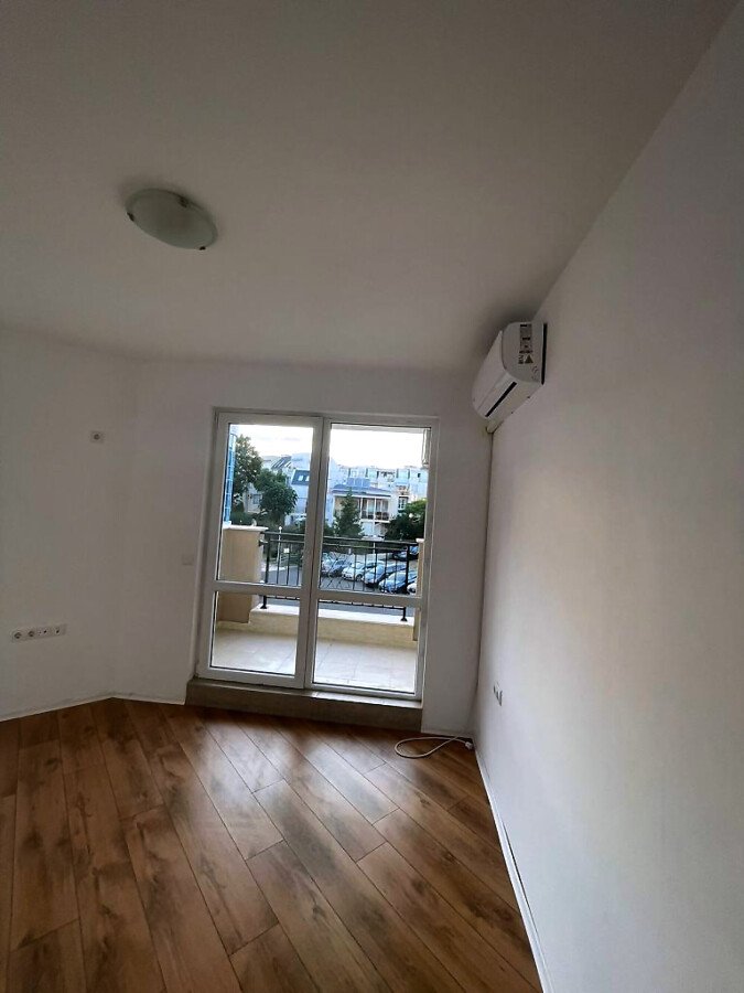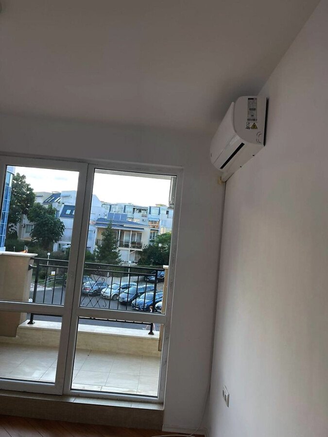 Банята е напълно завършена и функционална. В апартамента е монтиран климатик, поставени са подови настилки и метална интериорна врата.