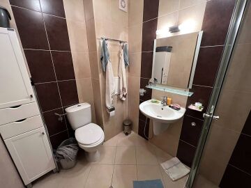Апартаментът е уютен и много функционален. Състои се от входно антре, всекидневна с трапезария и кухненски бокс, спалня, баня с тоалетна и душ кабина, тераса. Жилището е разположено на трети етаж, като има асансьор в сградата. Продава се оборудван с необходимата техника, напълно обзаведен, готов за нанасяне.
