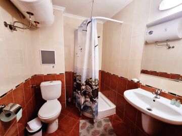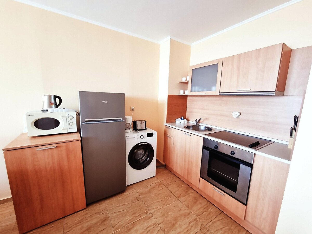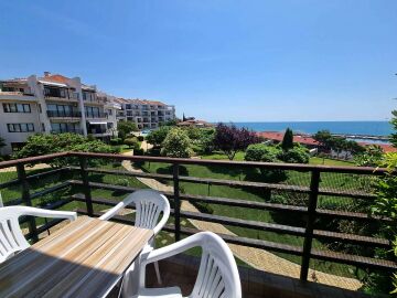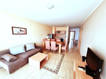 Апартаментът се състои от всекидневна с трапезария и обособен кухненски бокс, две спални, две бани с тоалетна и душ кабина, две тераси. От терасите се разкрива невероятна панорамна гледка към морето. Продава се оборудван с необходимата домакинска техника, напълно обзаведен, готов за нанасяне.